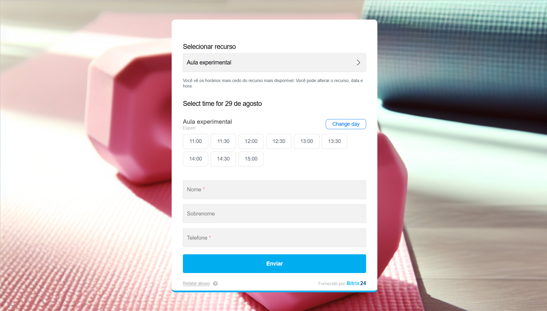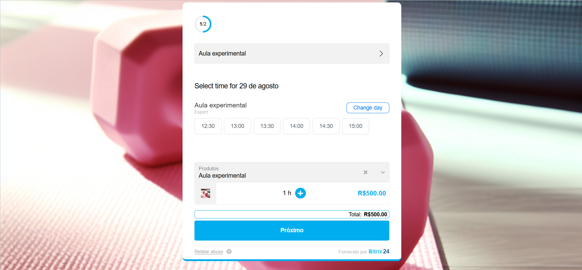 Exemplo de criação de um formulário de agendamento com pagamento para aula experimental