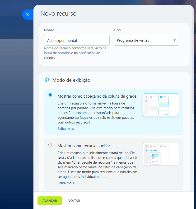 Essa opção é ideal quando o horário do agendamento é mais importante do que o recurso atribuído.