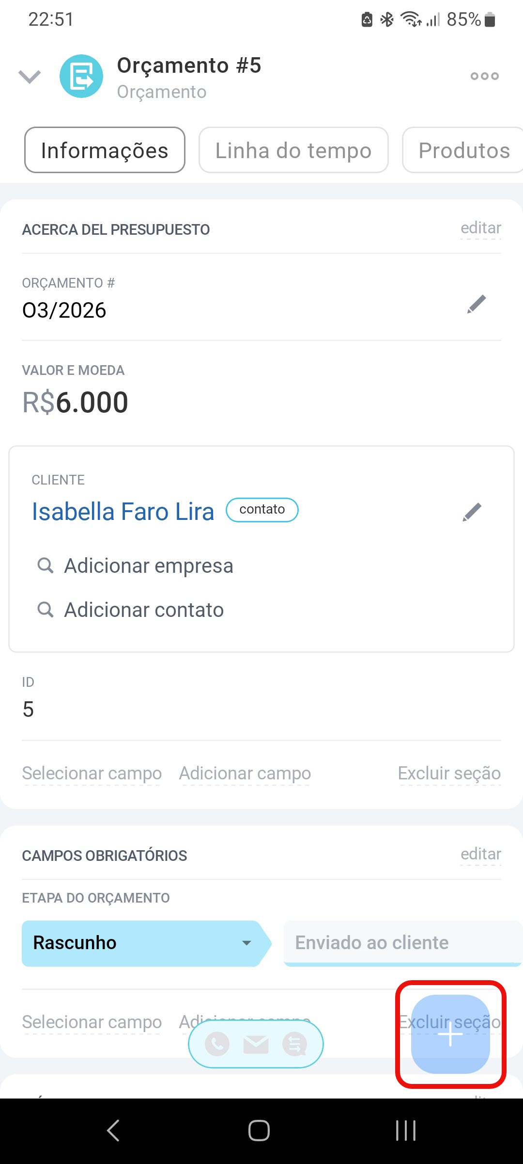 1. Na guia Detalhes ou Linha do tempo, toque no '+'.