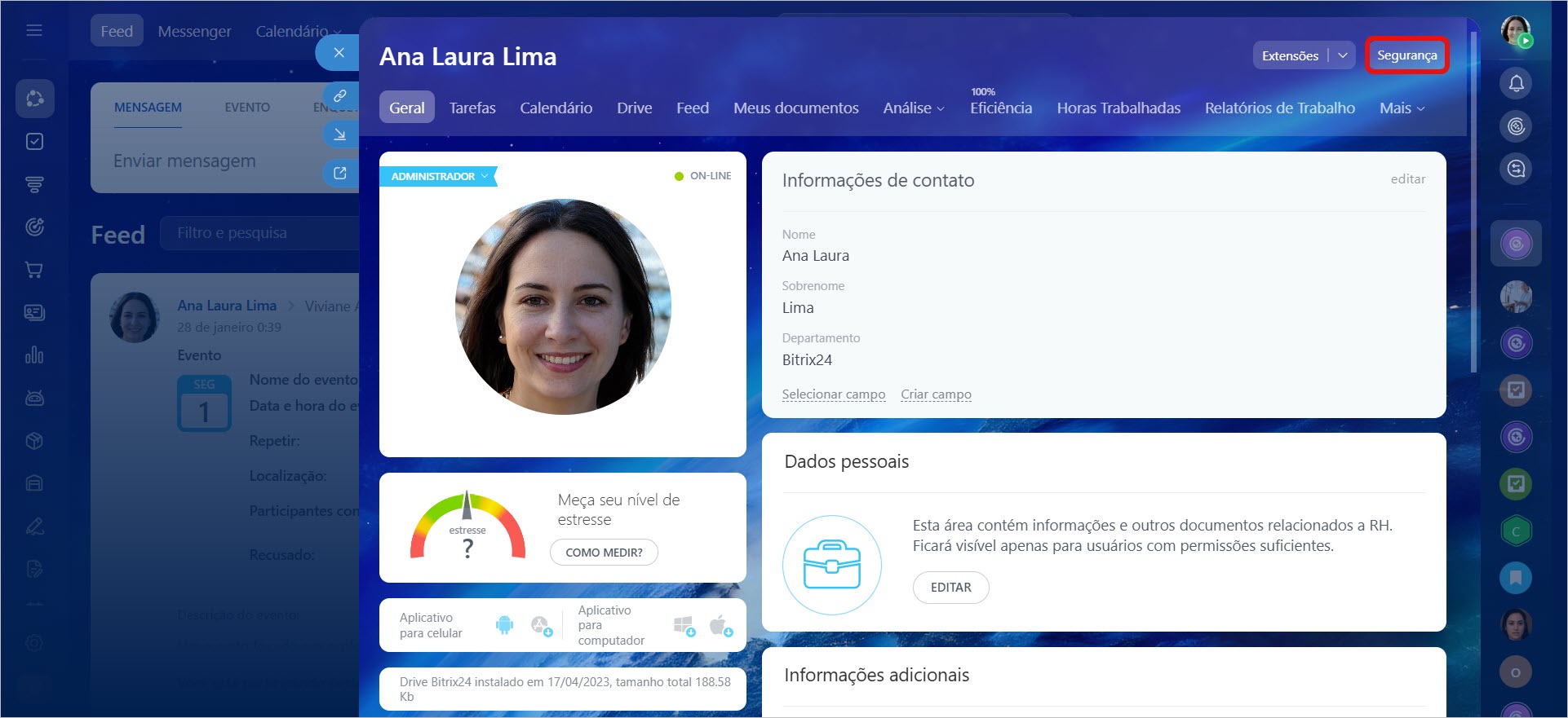Um usuário externo também pode publicar uma postagem no Feed da conta Bitrix24.
