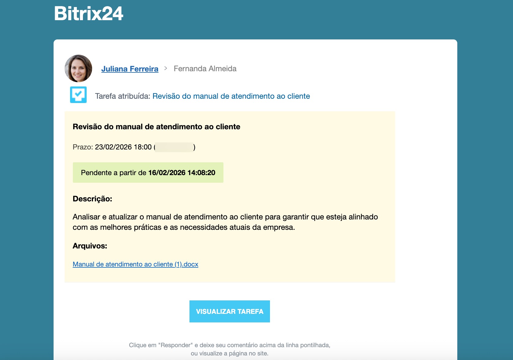 Assim que um e-mail for recebido por um usuário externo, ele poderá se familiarizar com a tarefa e acessá-la por completo.