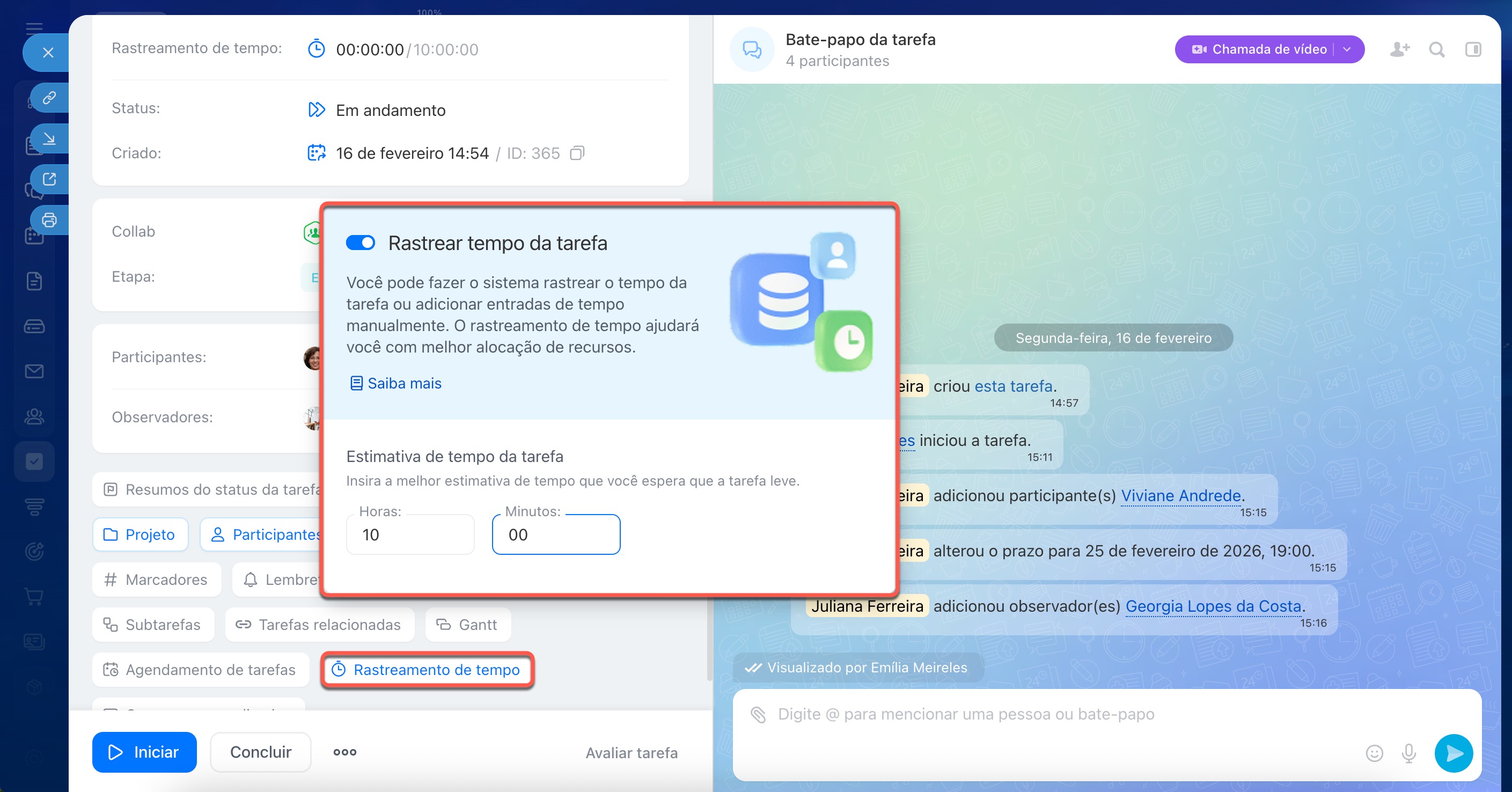 O período é levado em consideração para as tarefas nas quais a opção Rastreamento de tempo estiver habilitada.