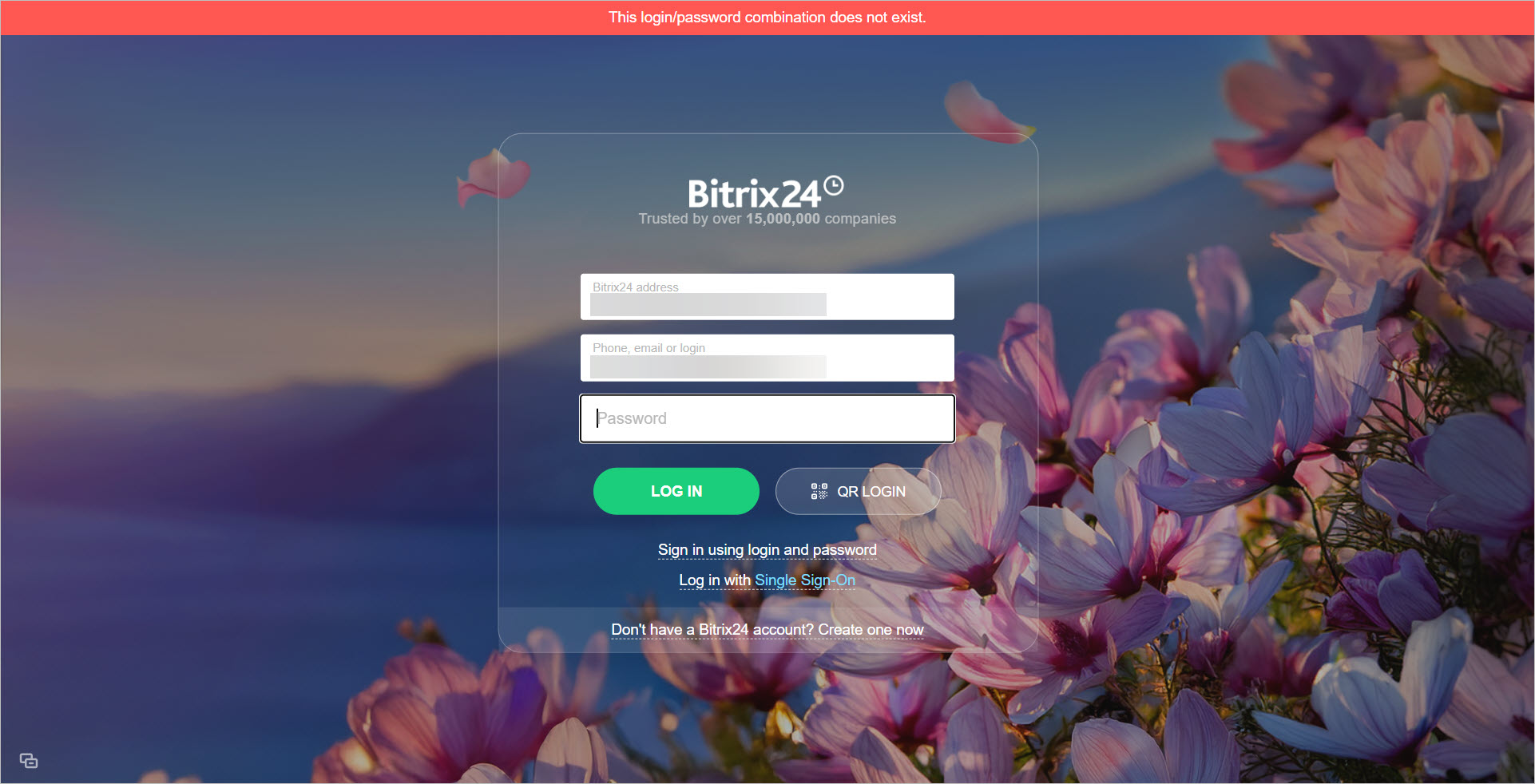 Tipo de erro. Ao fazer login no Bitrix24, o usuário visualiza uma das mensagens a seguir: