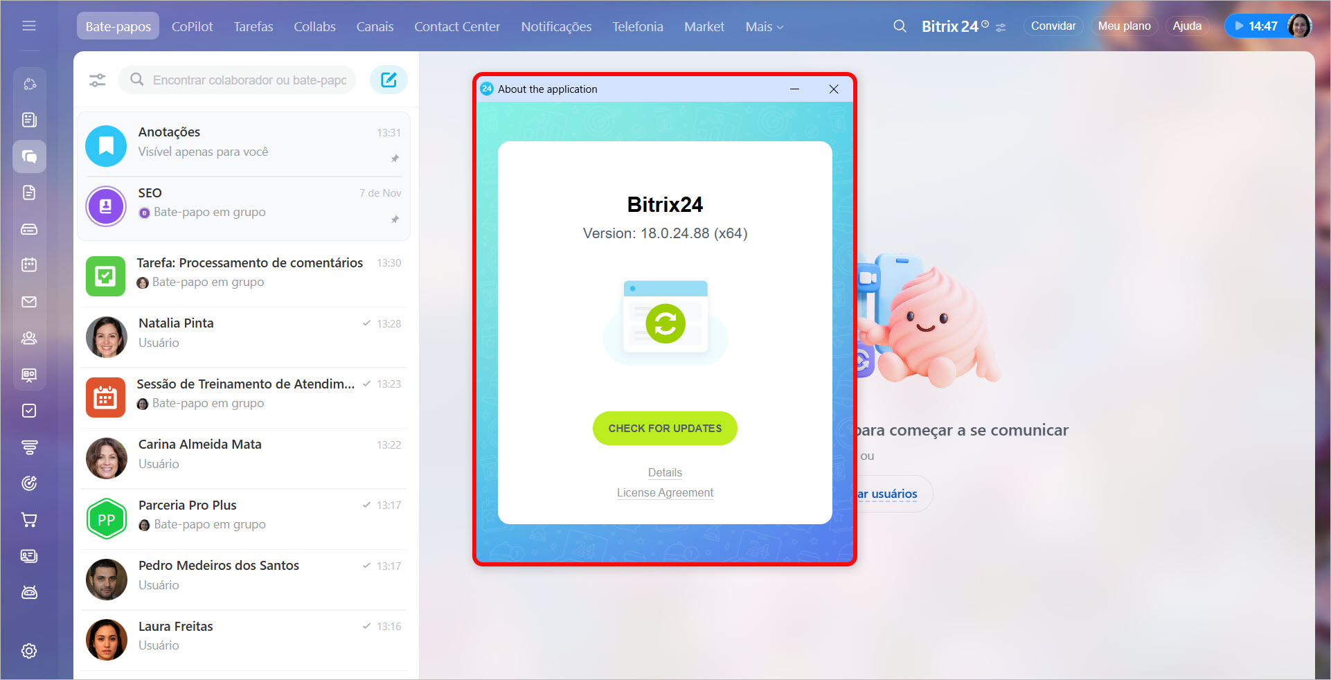 Causa do erro. Versão desatualizada do Bitrix24 Messenger.