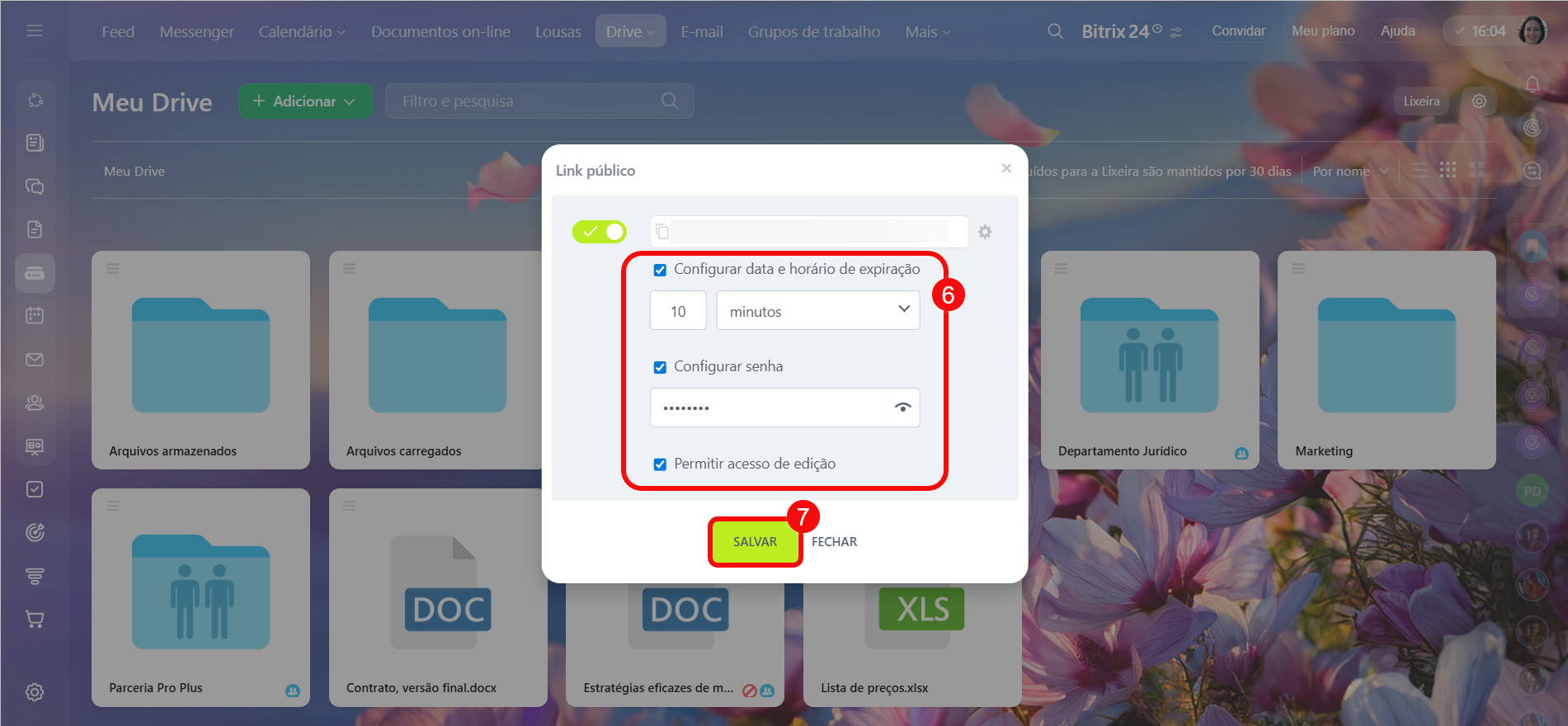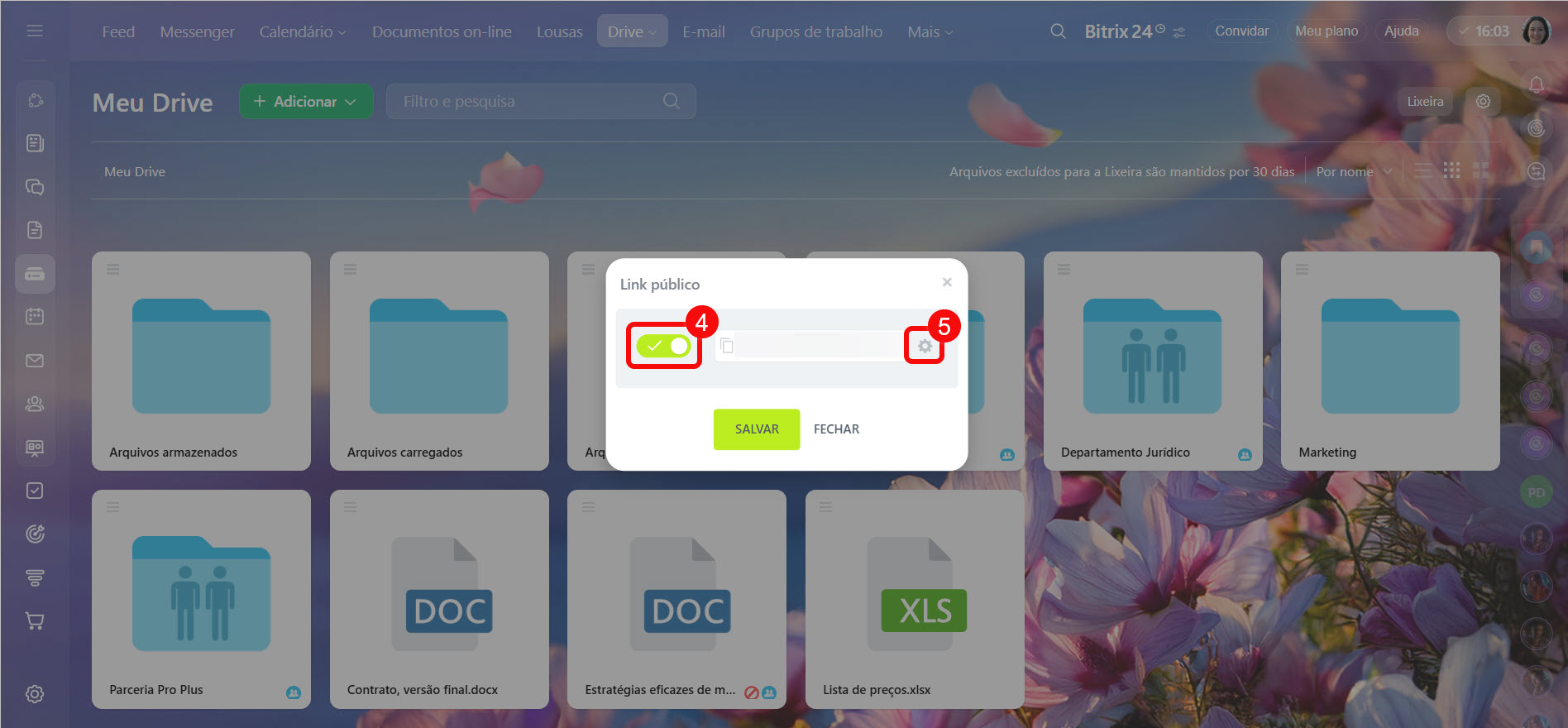 Caso precise conceder acesso a um usuário externo, como um cliente ou fornecedor, utilize um link público.