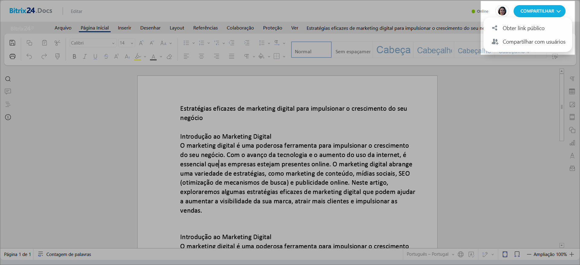 - Bitrix24 — é um editor online integrado para trabalhar com documentos. Você pode criar, editar e compartilhar documentos com seus colegas diretamente no Bitrix24.
