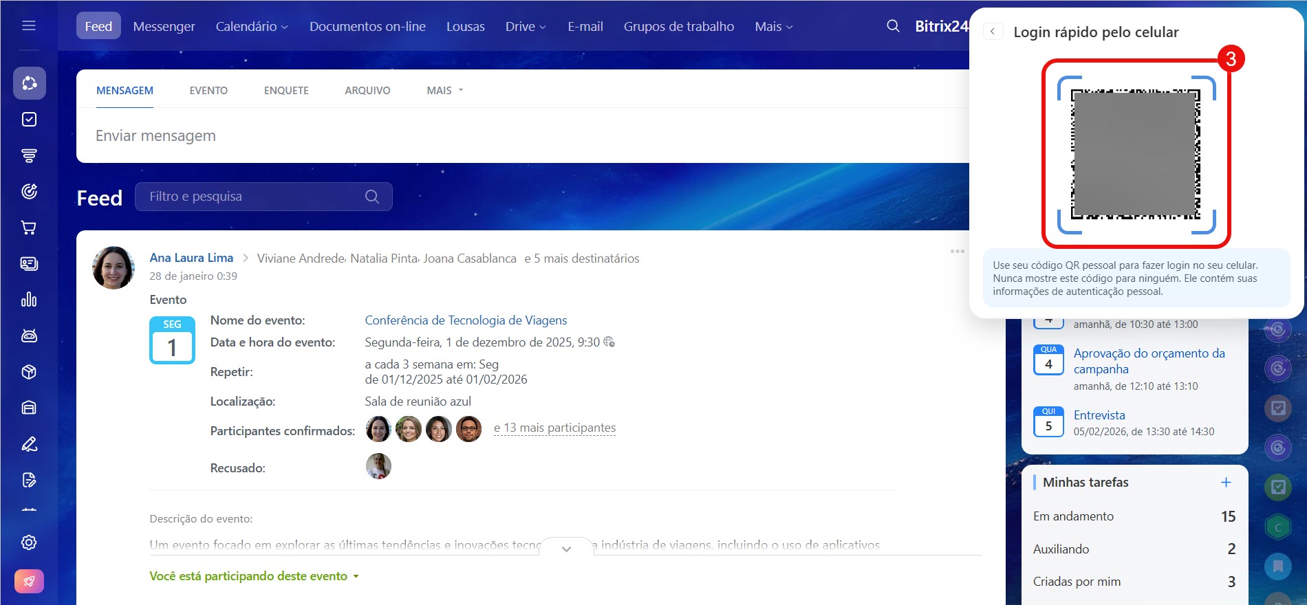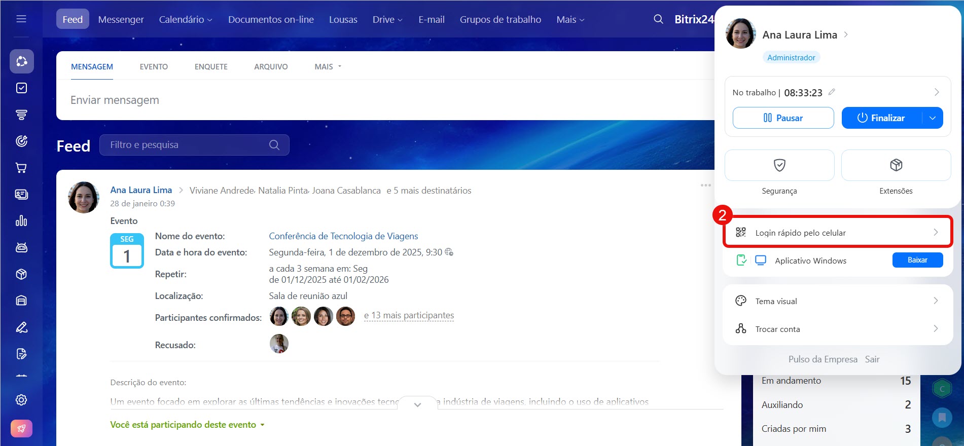 Você será automaticamente autorizado na sua conta no aplicativo móvel Bitrix24.