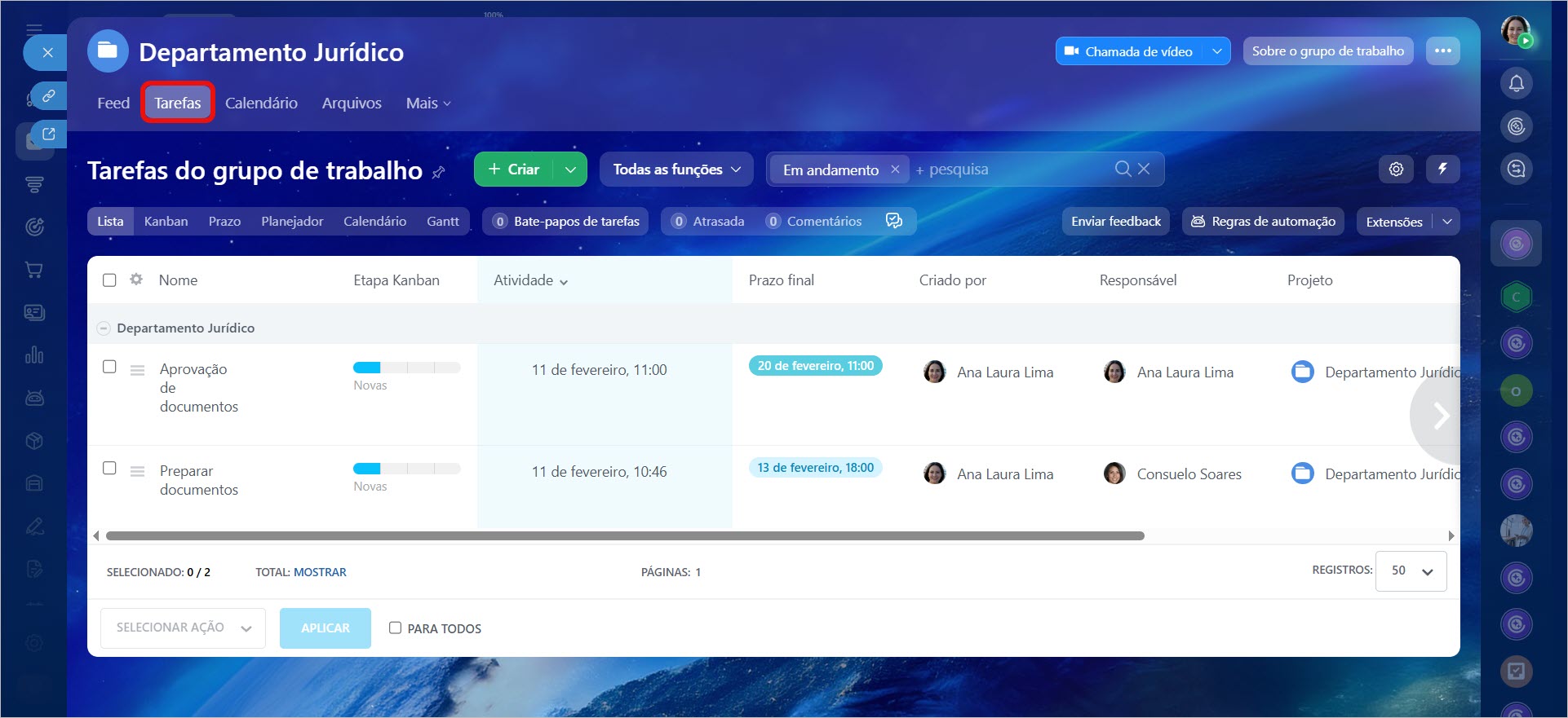 - Você pode encontrar suas tarefas na seção Minhas tarefas ou na lista geral de tarefas.
