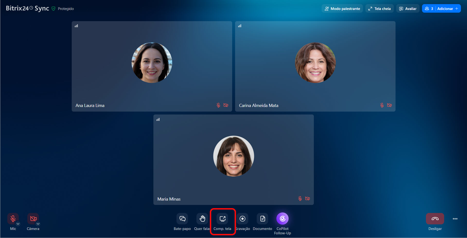 Vários participantes podem compartilhar suas telas simultaneamente.