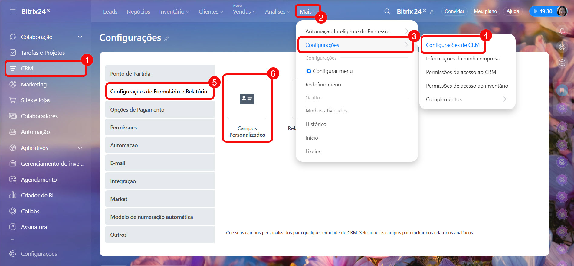 Somente administradores do Bitrix24 e funcionários com permissão para editar as configurações do CRM podem criar campos personalizados.