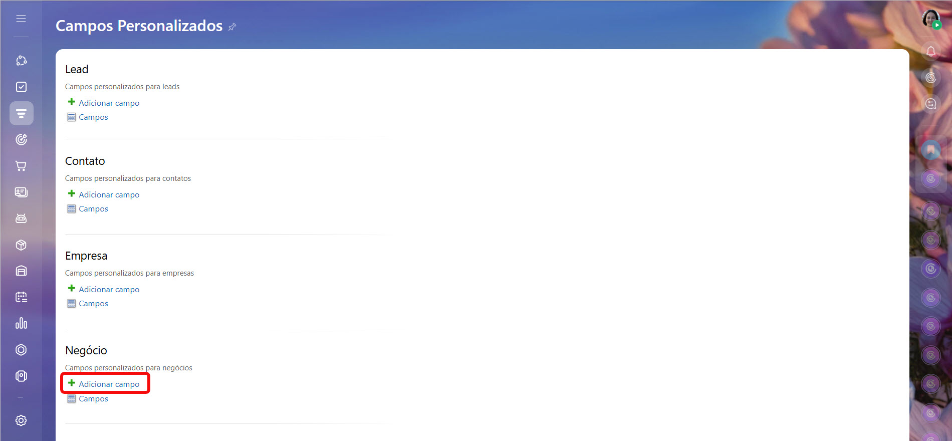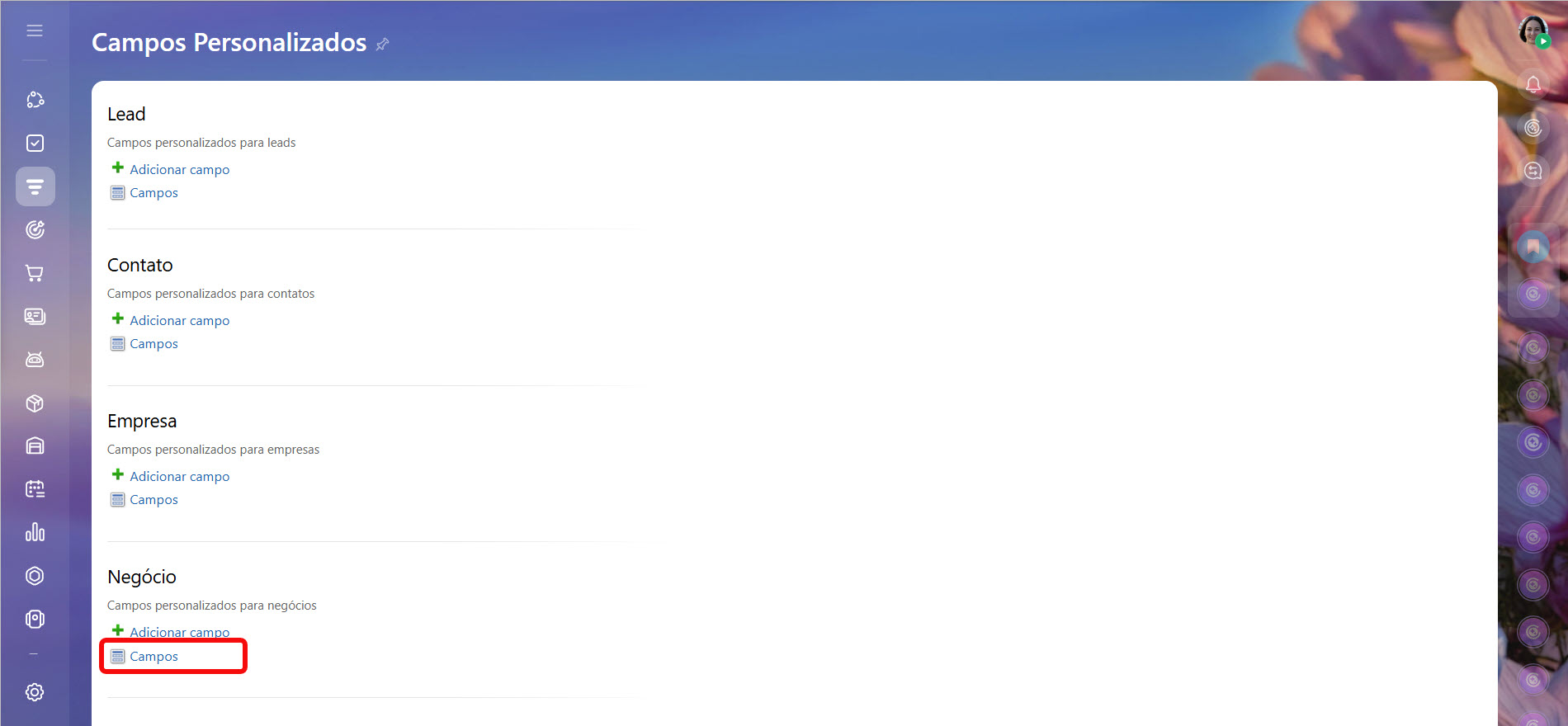 Este artigo irá guiá-lo sobre como criar campos personalizados em leads, negócios, contatos, empresas e orçamentos.