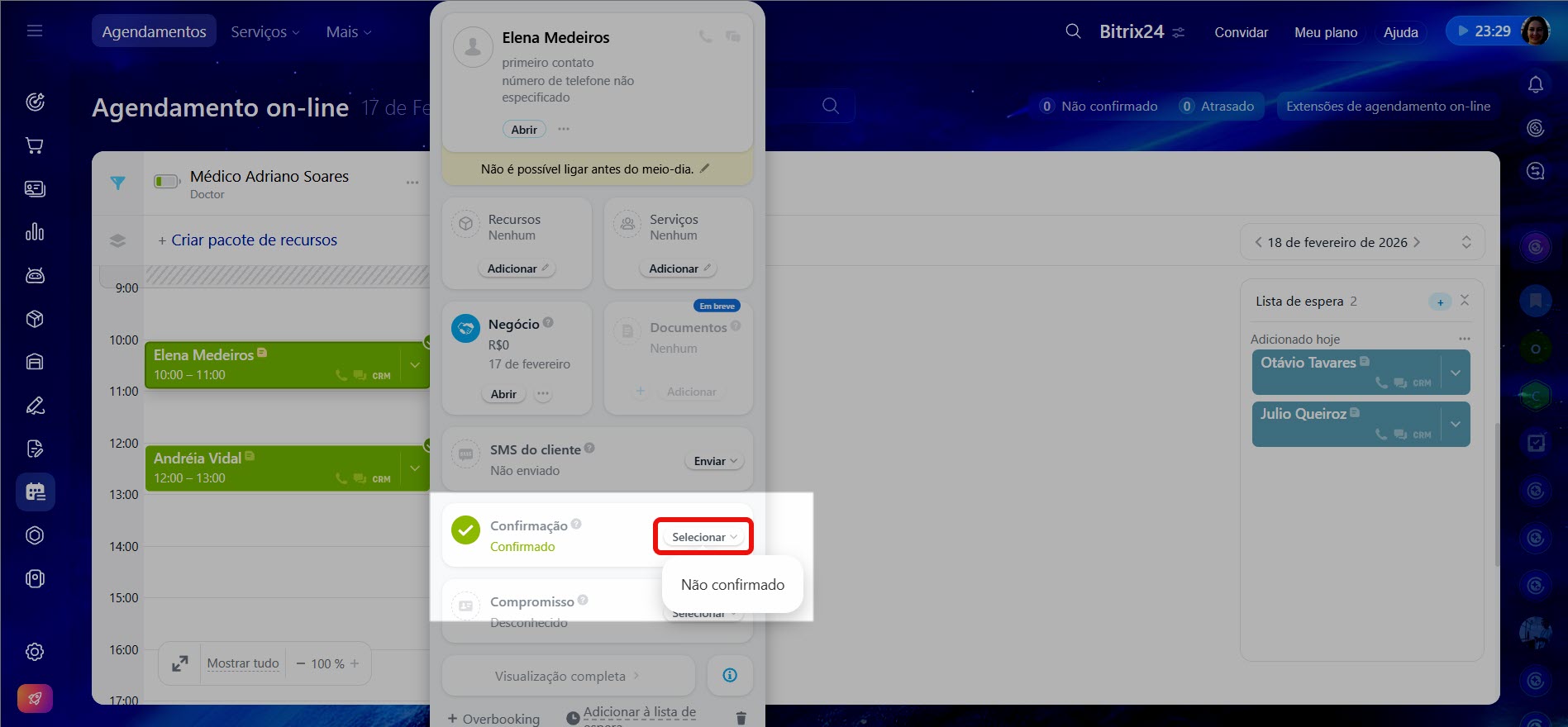 Se o cliente não confirmar o agendamento, você pode ligar para ele e atualizar o status manualmente.