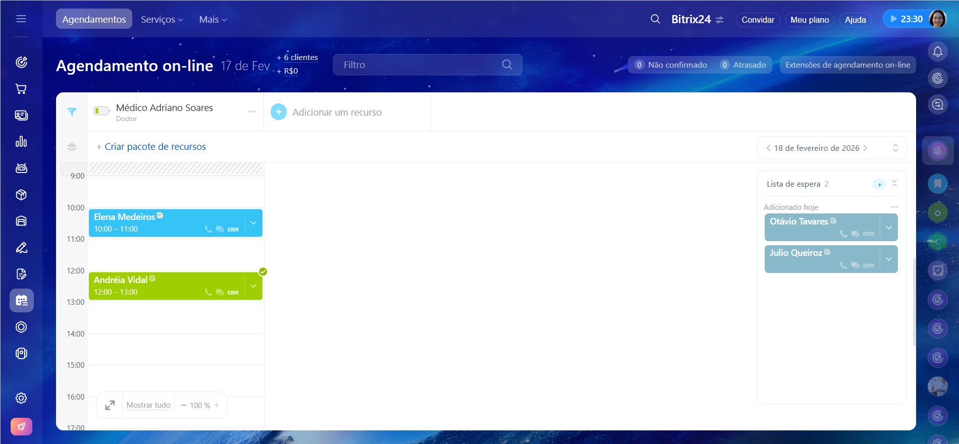 Agendamento on-line do Bitrix24 é uma ferramenta que facilita o agendamento de compromissos com especialistas e a reserva de equipamentos ou instalações.