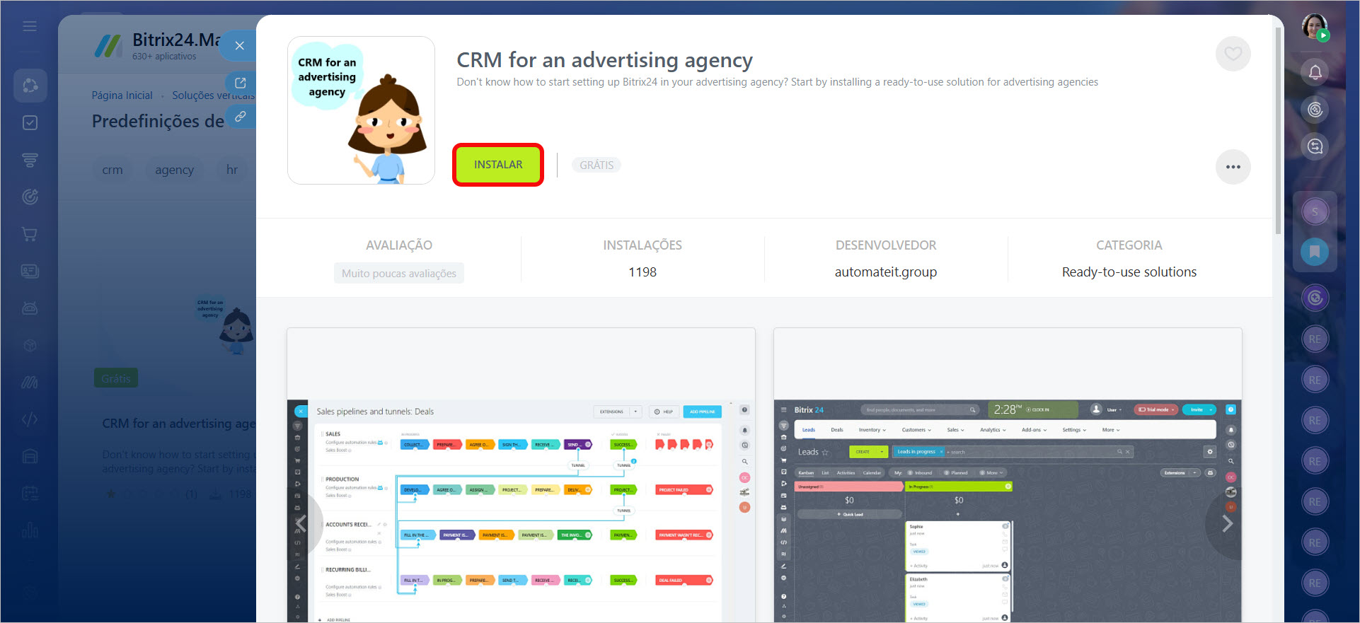 Se você está procurando um CRM pré-configurado que seja ideal para o seu tipo de negócio, o Parceiro Bitrix24 pode enviar um link de registro de conta Bitrix24 com configurações de CRM pré-definidas.
