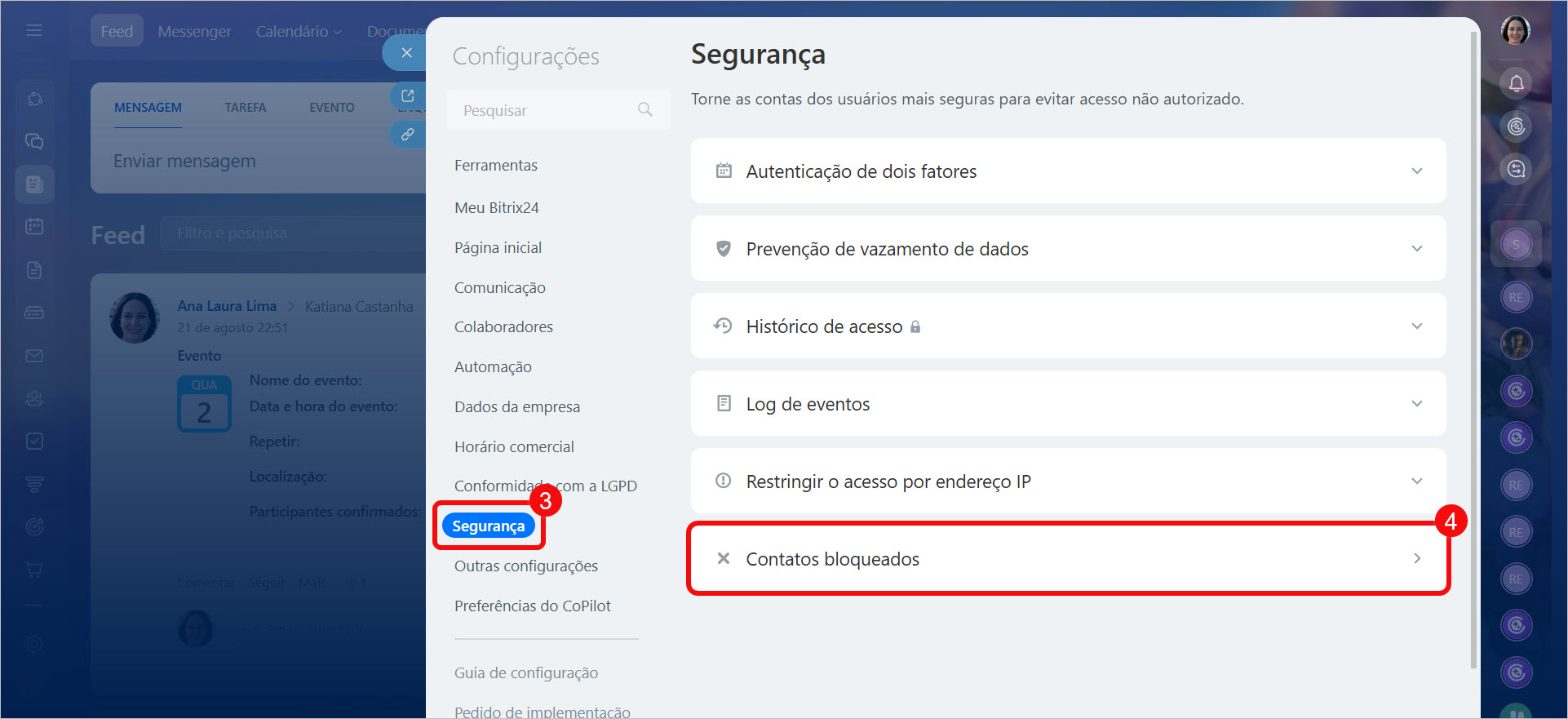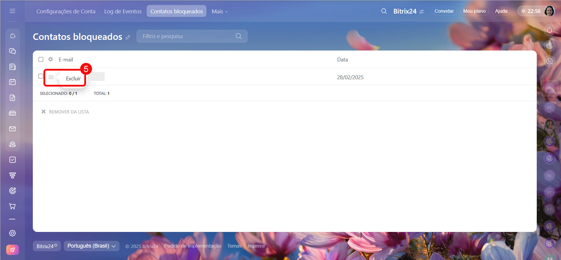 - Verifique as listas de contatos bloqueados nas configurações do Bitrix24. Se o endereço foi incluído por engano, remova-o.
