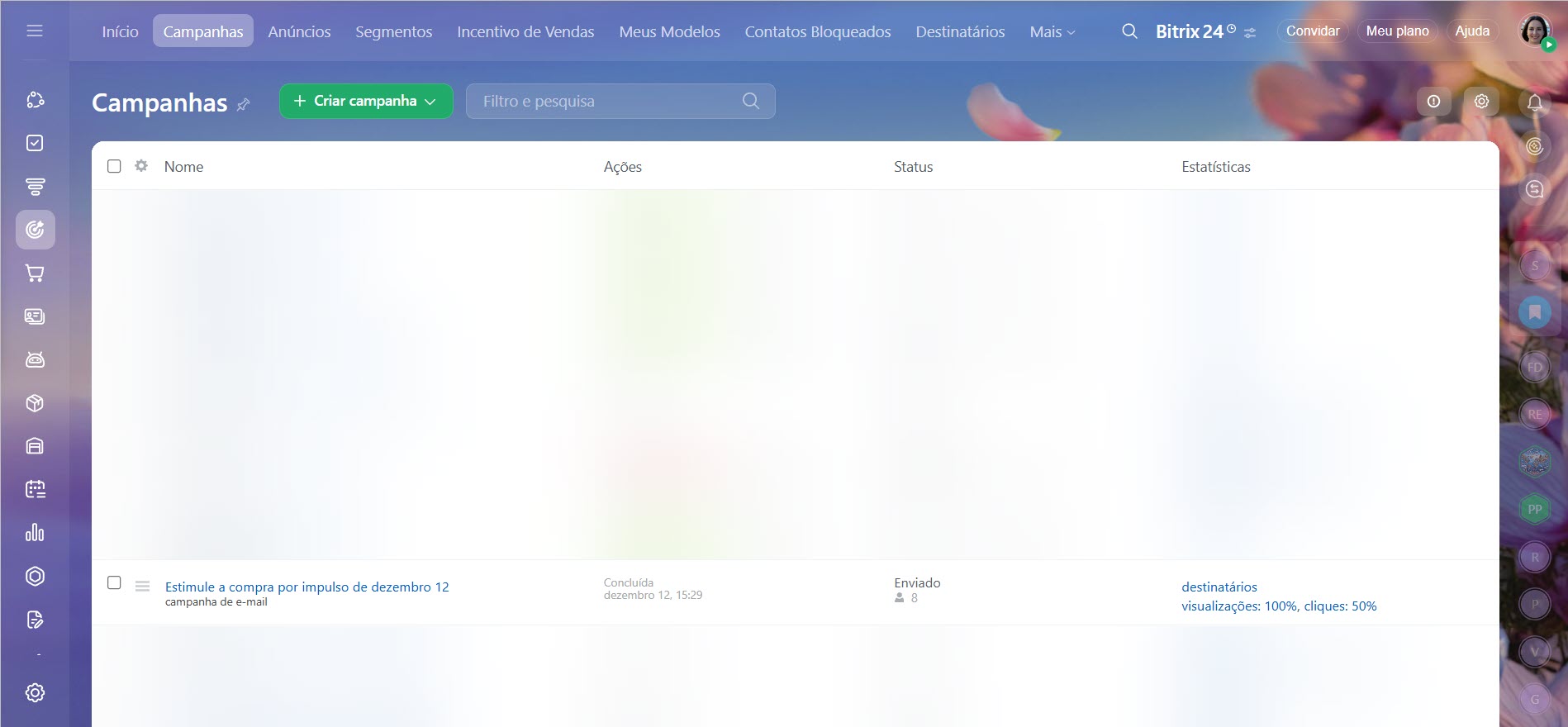 Se um cliente cancelou a inscrição de uma campanha de e-mail, ele não poderá mais recebê-la, mesmo que seu endereço eletrônico esteja no segmento. Você pode usar outras ferramentas do Bitrix24 para se comunicar com esse cliente: chamadas, mensageiros, campanhas de SMS, entre outros.