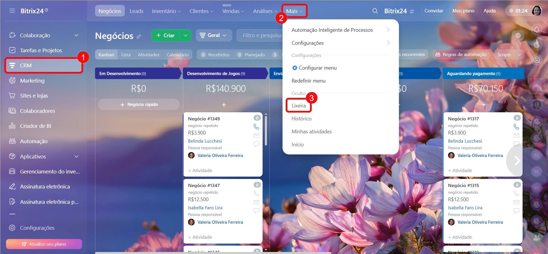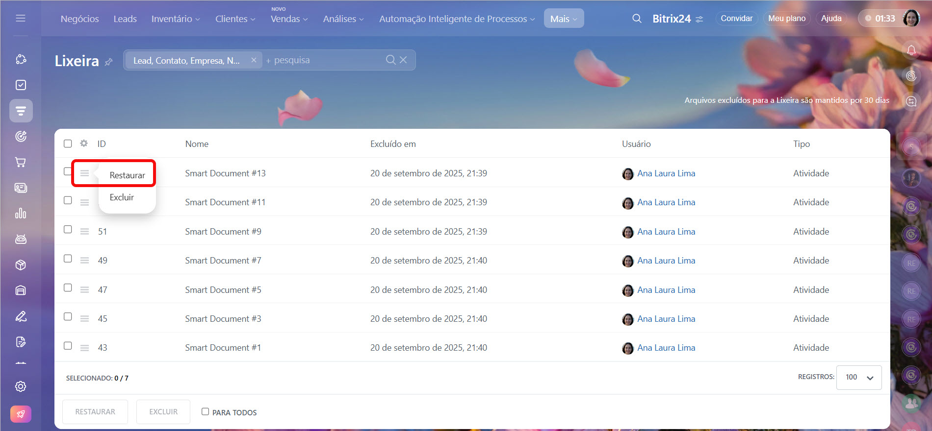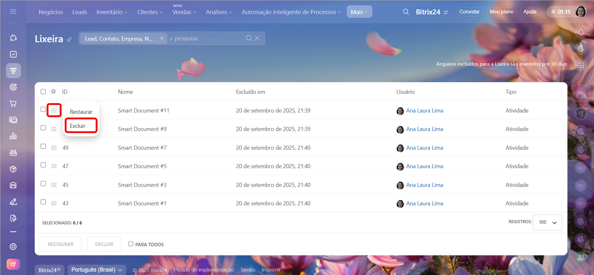 Como restaurar ou excluir definitivamente um item da lixeira do CRM