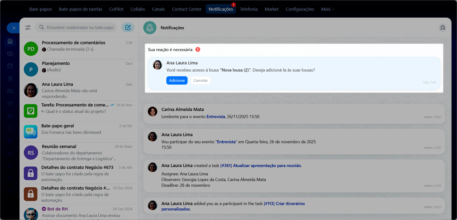 - Os documentos anexados a tarefas ou mensagens podem ser editados por quem tiver acesso a esses elementos.