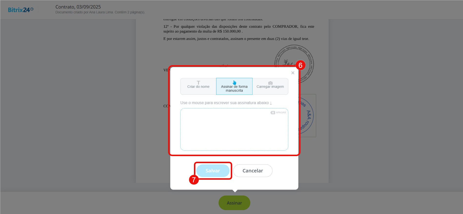 - Carregar imagem — envie uma imagem com sua assinatura.