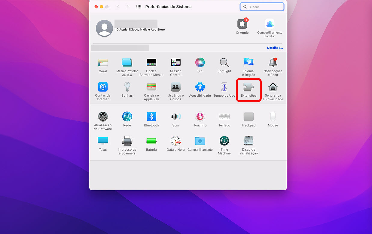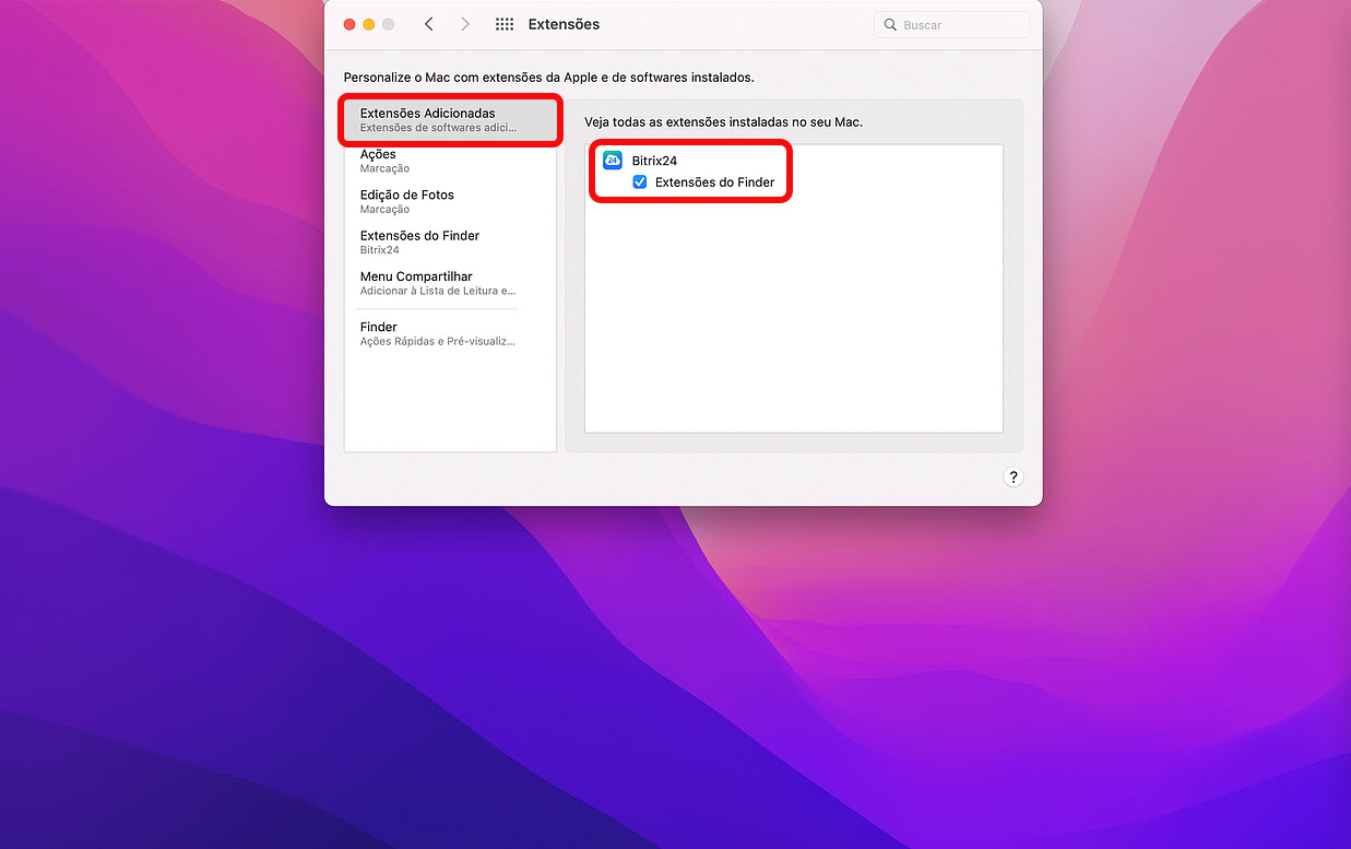 - Vá para Preferências do Sistema > Extensões > Extenções adicionadas.