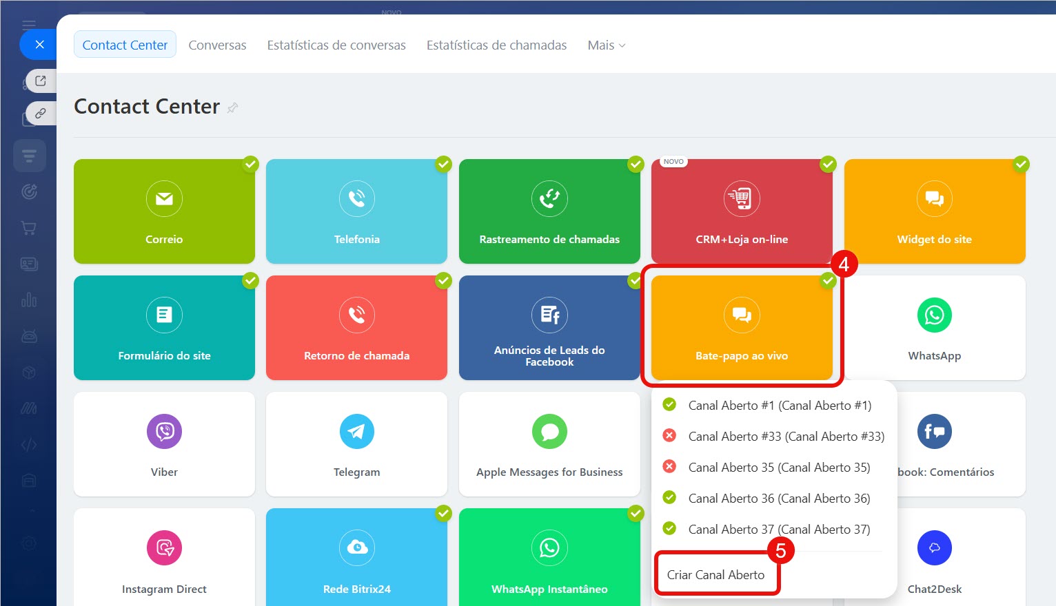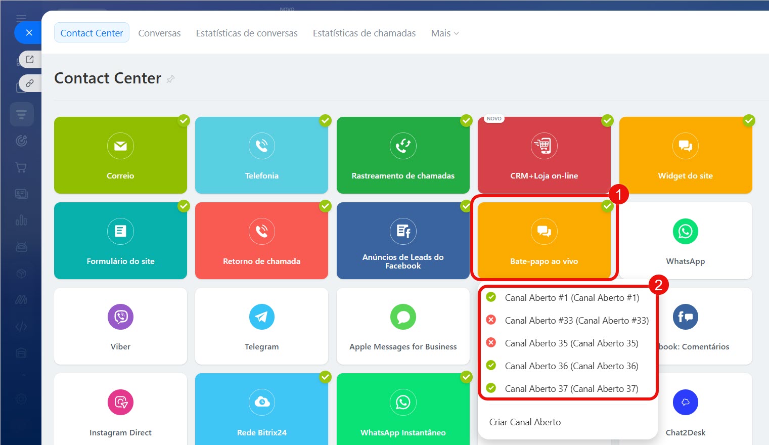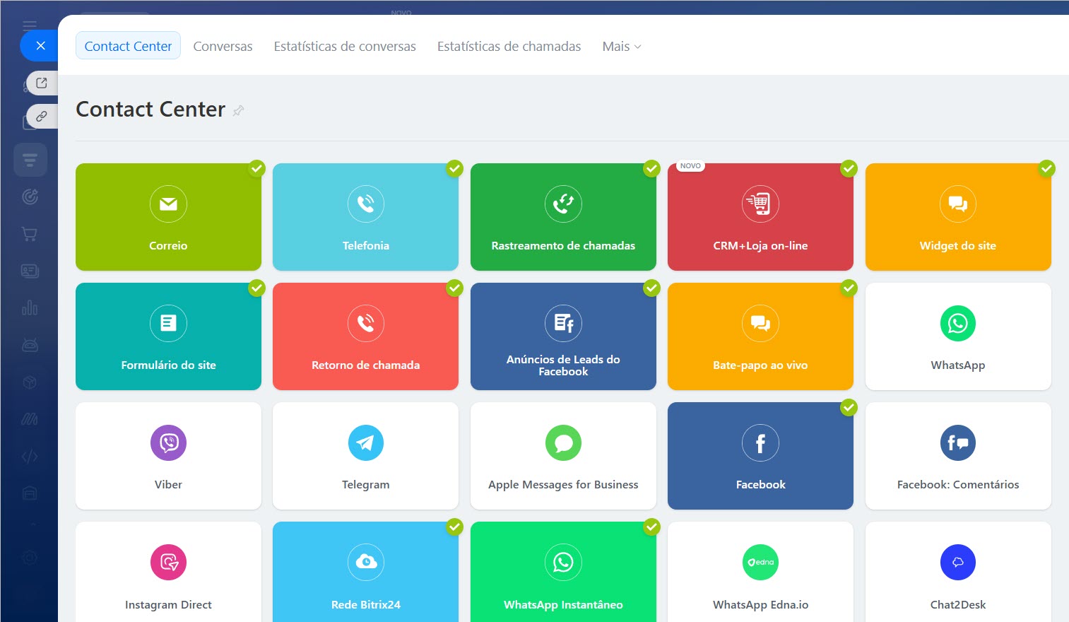 Também é possível adicionar outros canais de comunicação por meio de aplicativos disponíveis no Bitrix24 Market.