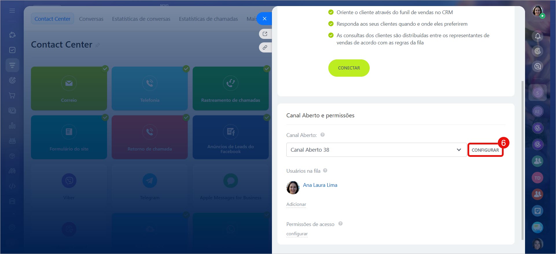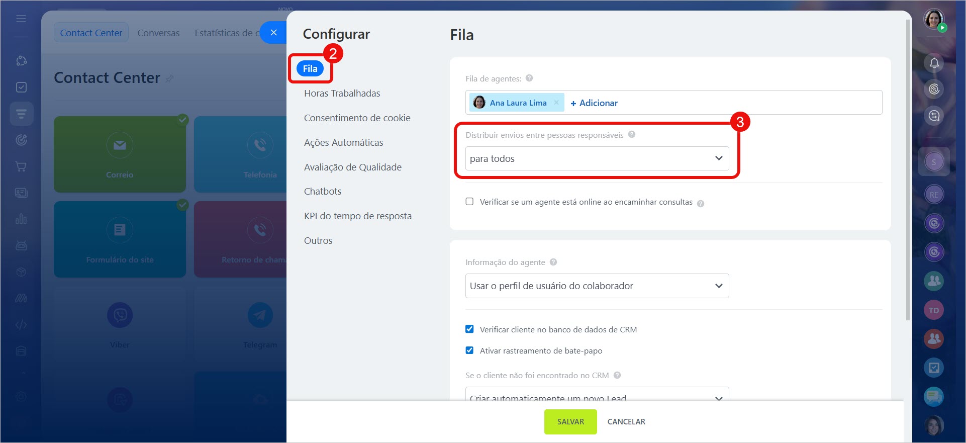 Você pode adicionar qualquer número de colaboradores do seu Bitrix24 à fila.