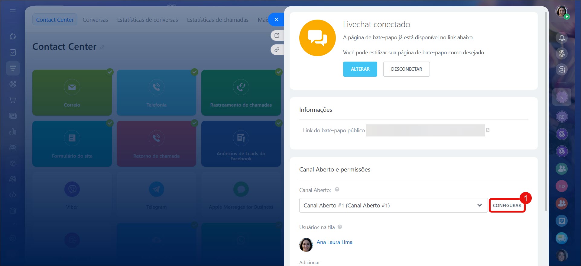 6. Clique em Configurar para acessar as configurações do canal aberto.