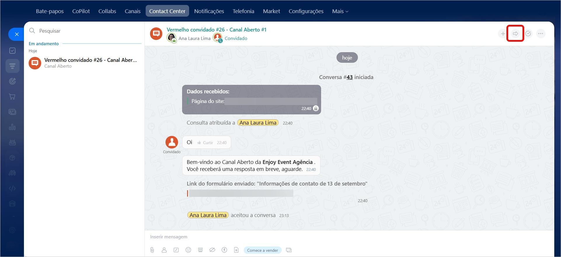 Um chat com o cliente pode ser transferido para outro agente ou para outro canal aberto. O método de transferência depende se o diálogo já foi assumido ou não.