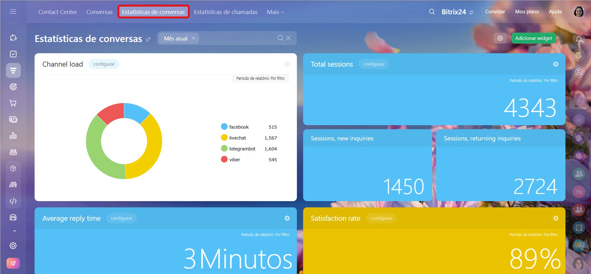Acesse CRM > Clientes > Contact Center > Estatísticas de conversas.