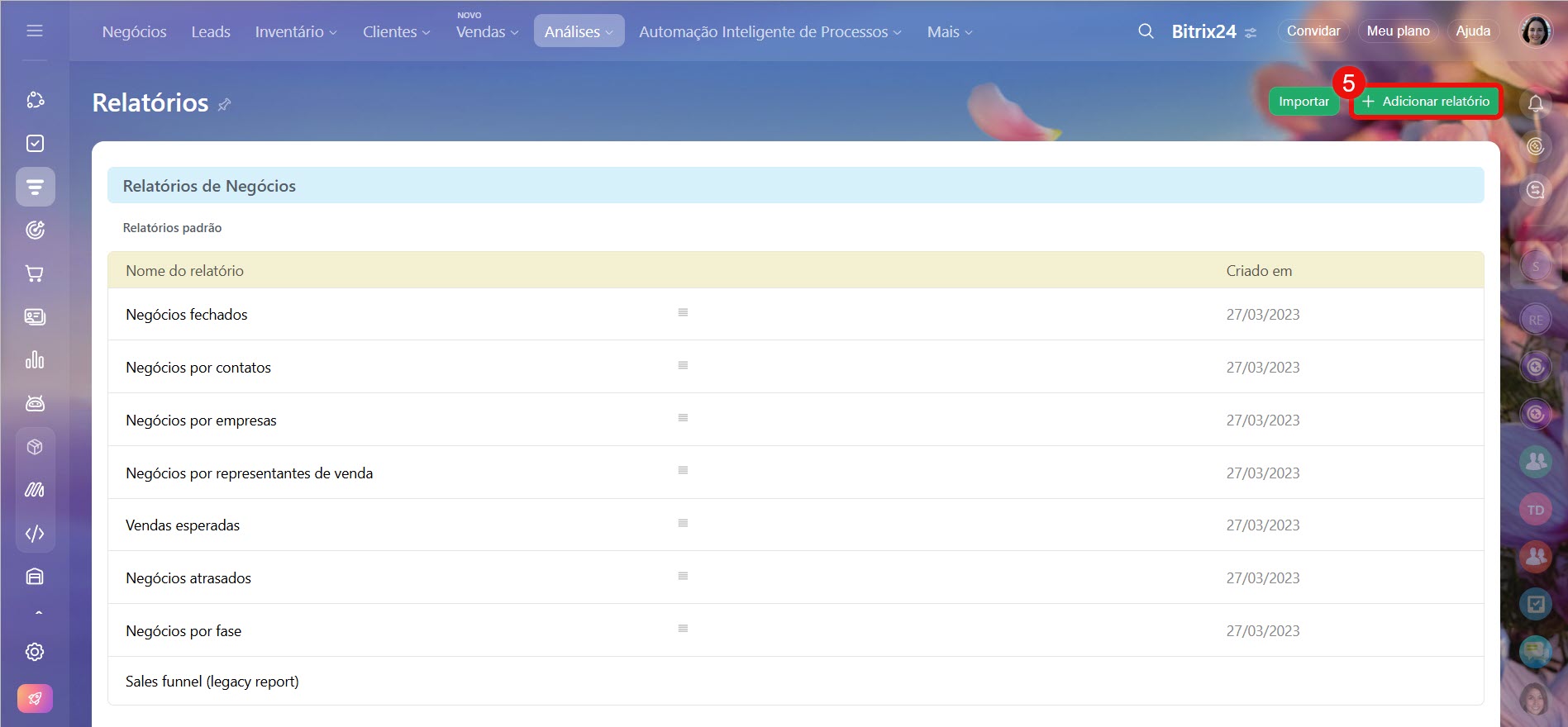 5. Clique no botão Adicionar Relatório para criar um novo relatório.