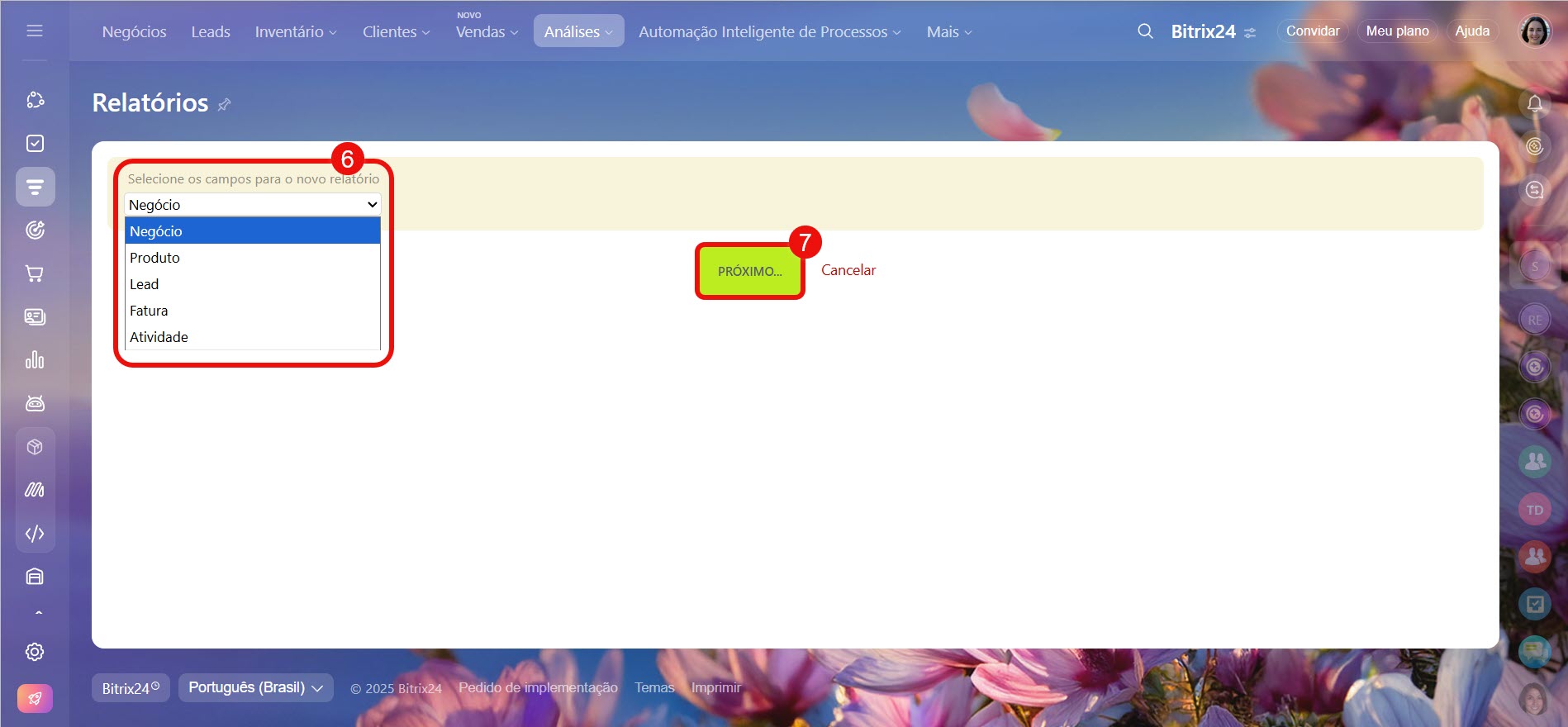 6-7. Selecione os campos para o novo relatório e clique em Próximo.