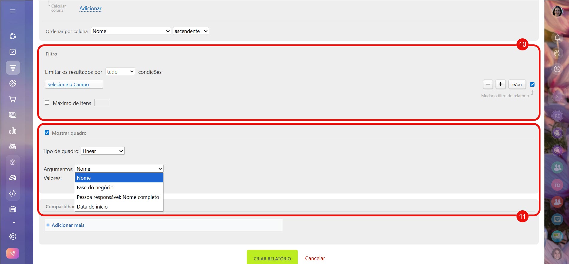 10. Aplique filtros de relatório para restringir os resultados com base nos parâmetros escolhidos.