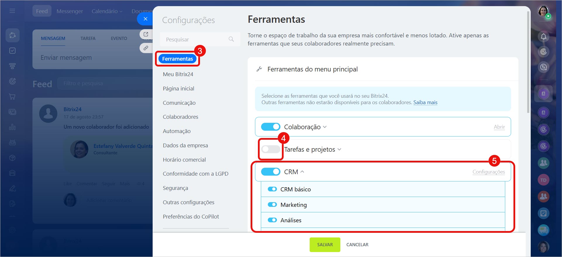 Como ativar ou desativar ferramentas do Bitrix24 para toda a empresa