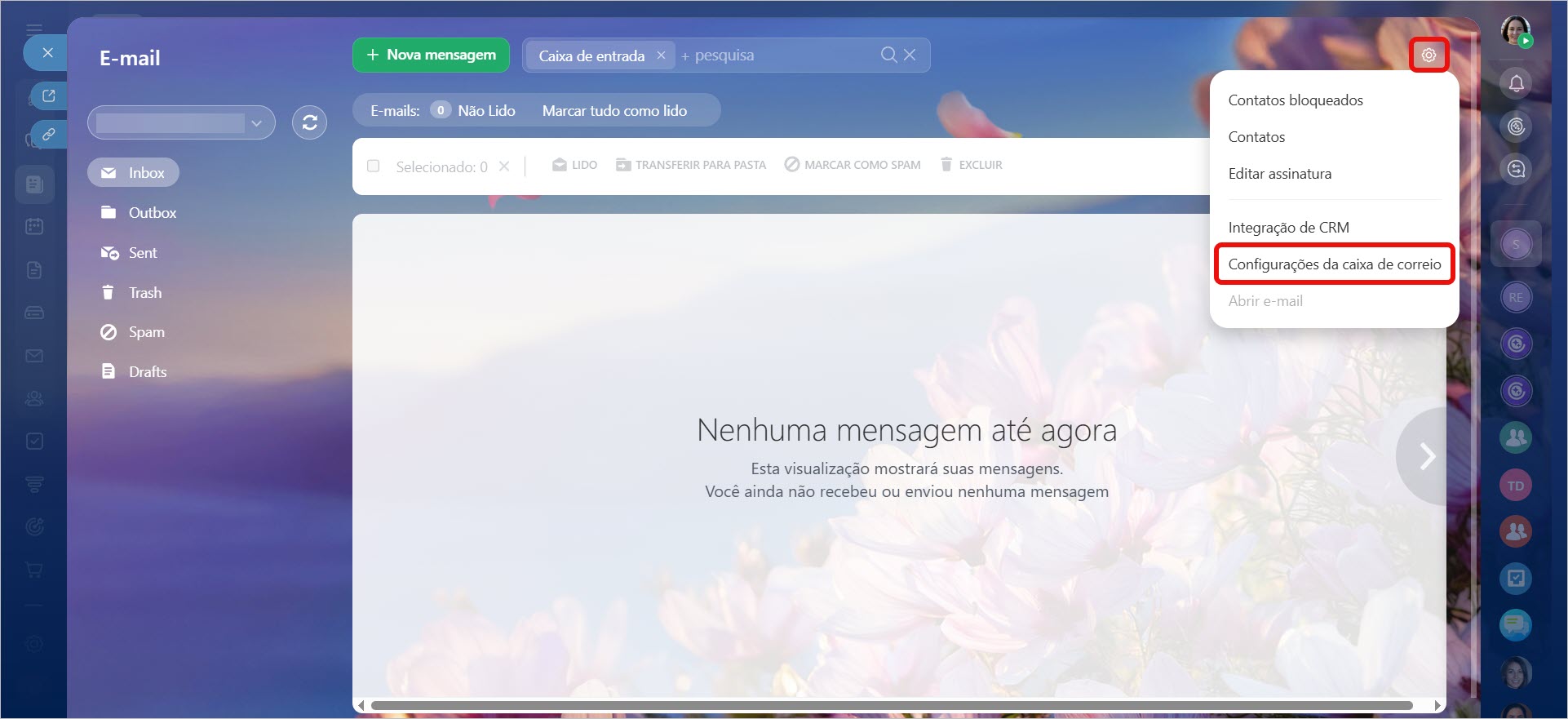 2-3. Clique no botão engrenagem e selecione Configurações da caixa de correio.