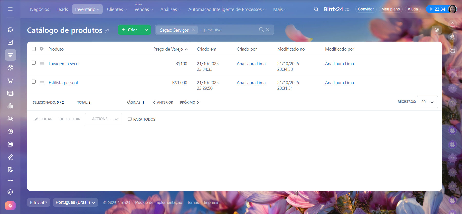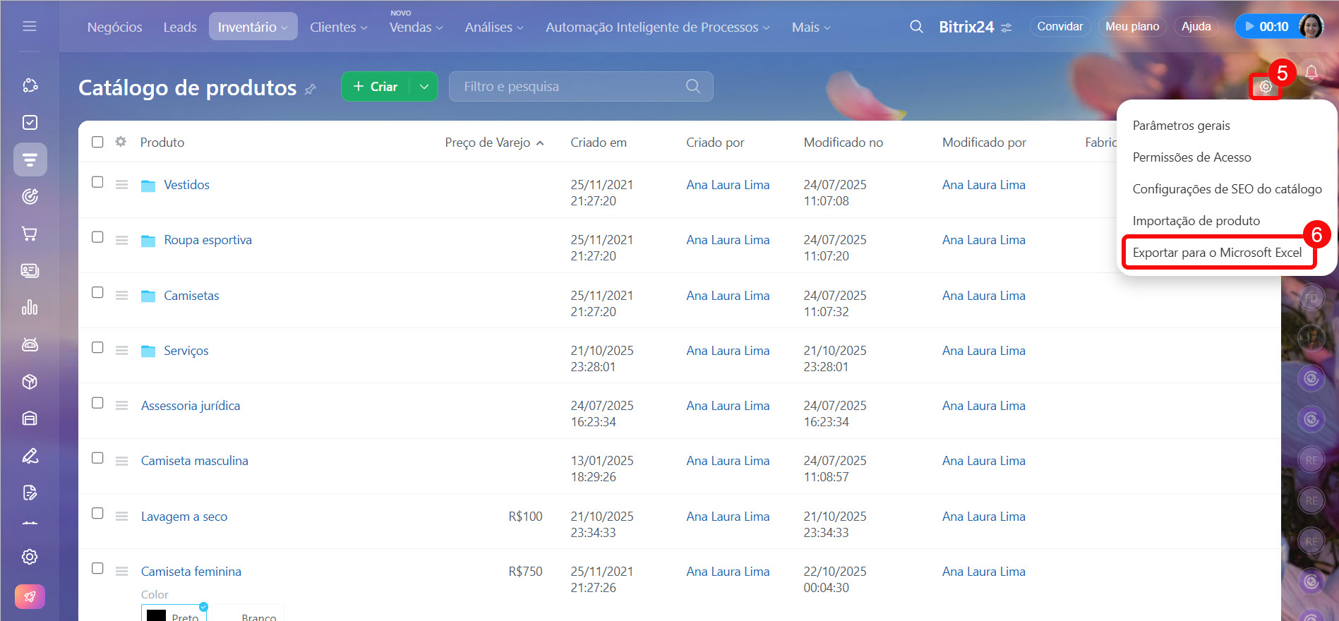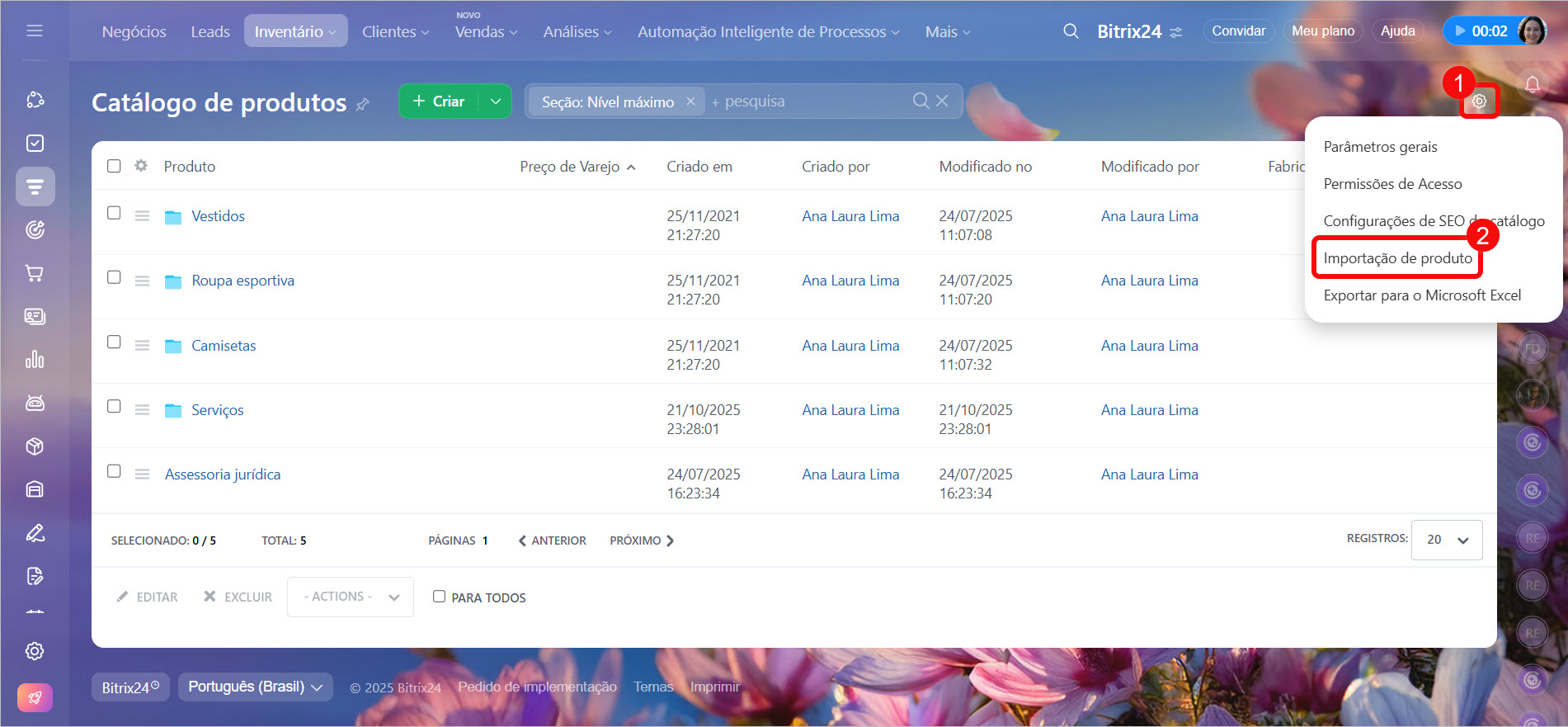 - carregar uma lista pronta de produtos e serviços no Bitrix24,