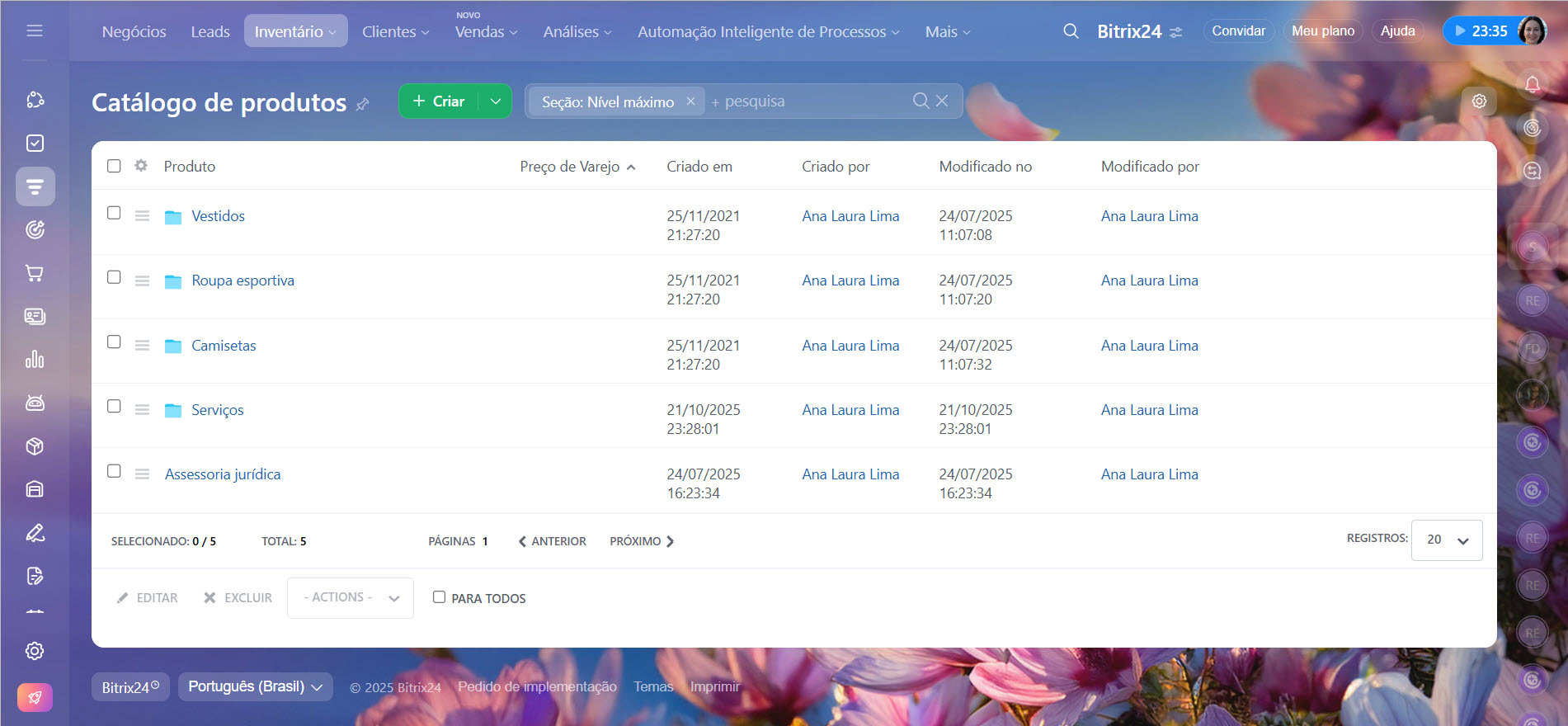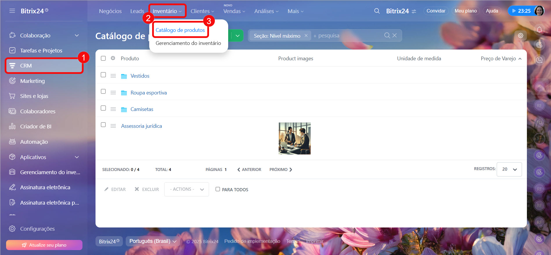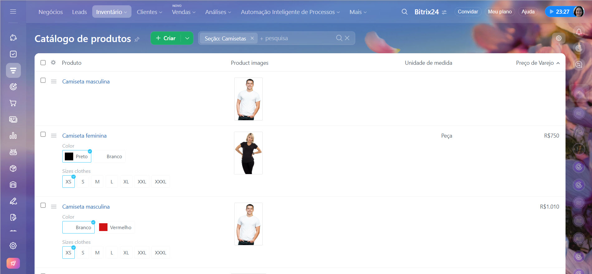 - carregar uma lista pronta de produtos e serviços no Bitrix24,