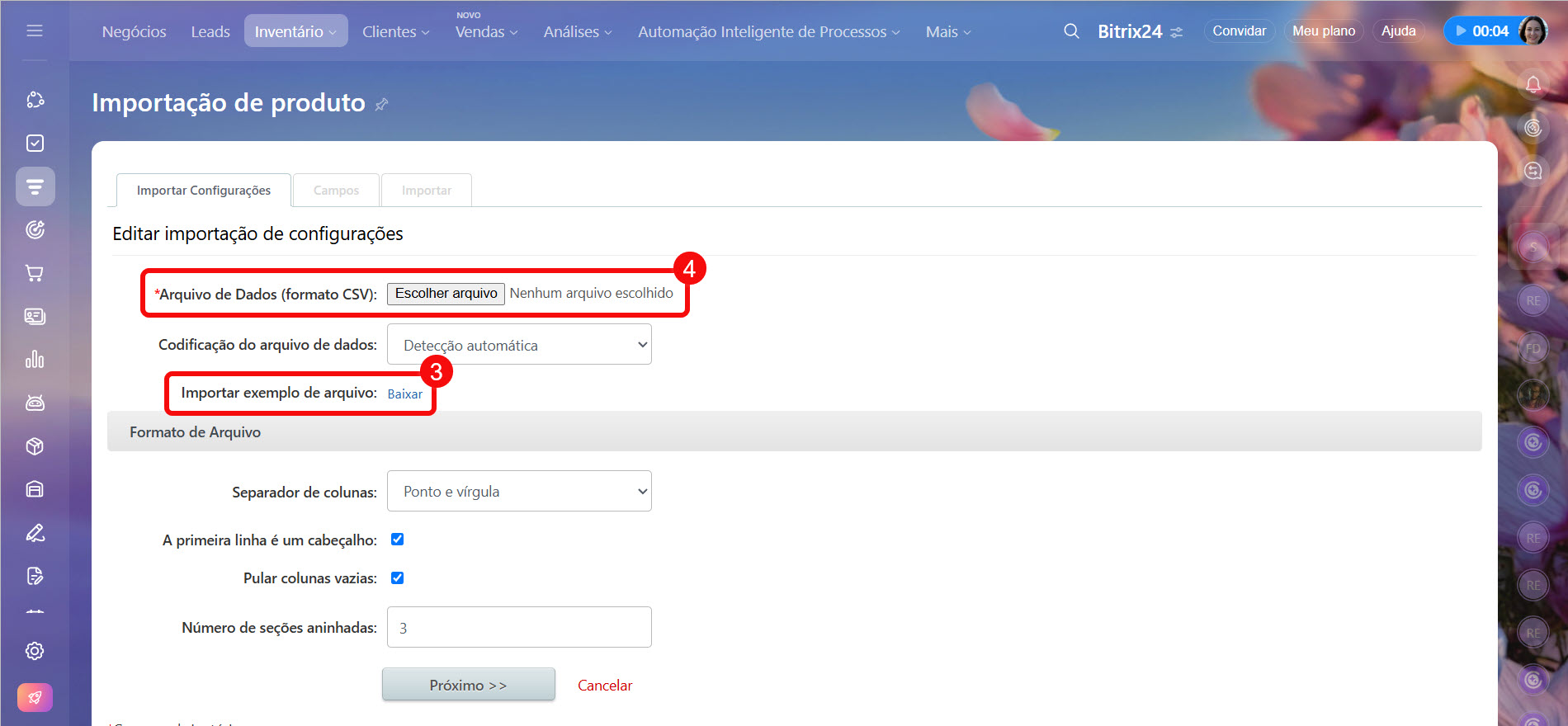 Como importar produtos pelo CRM