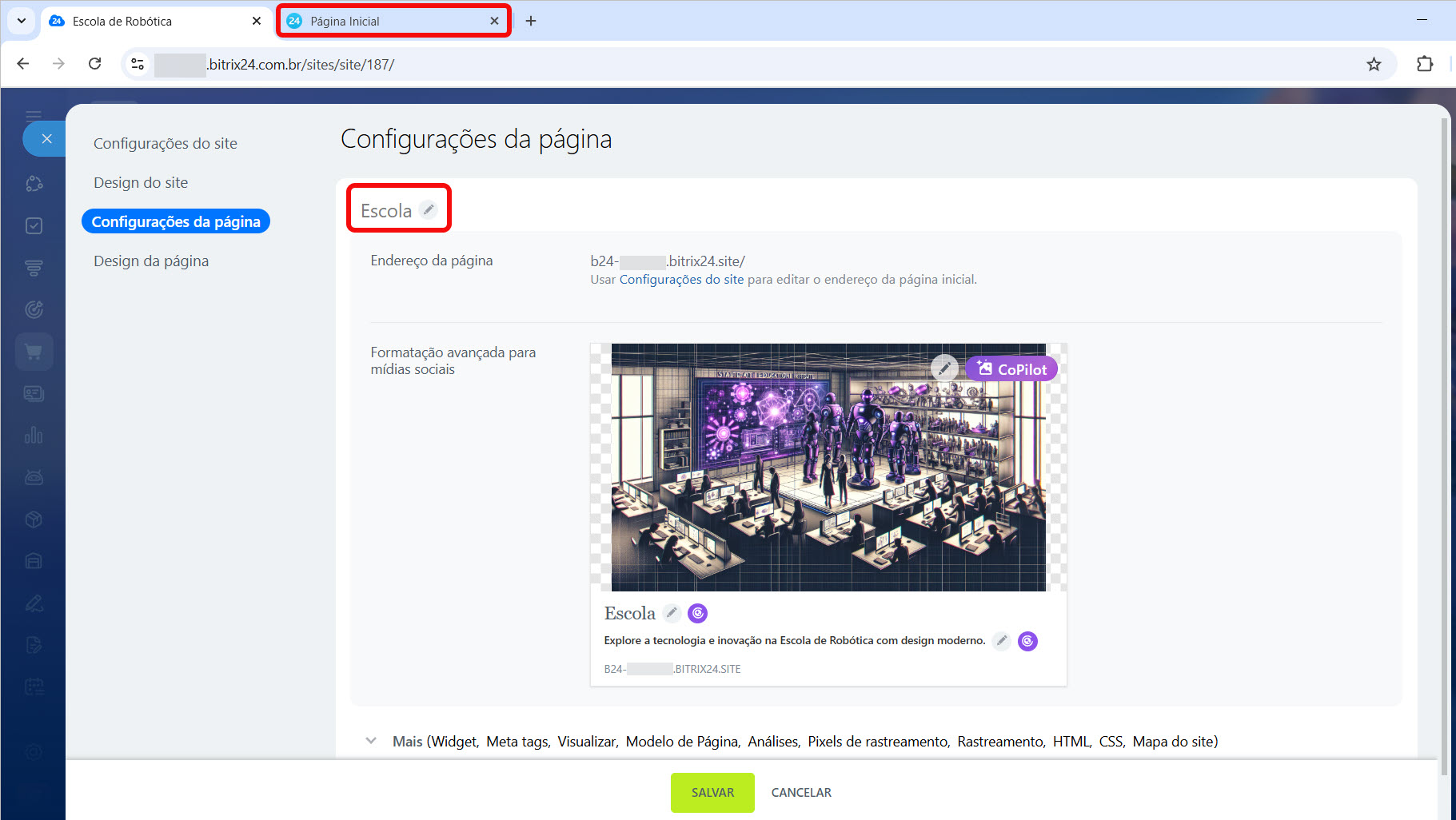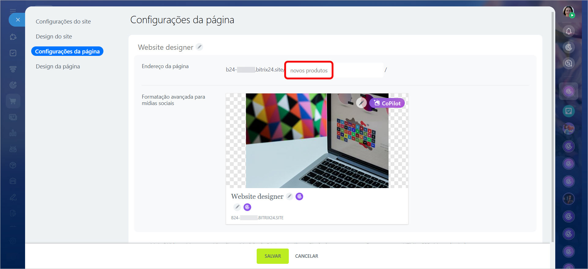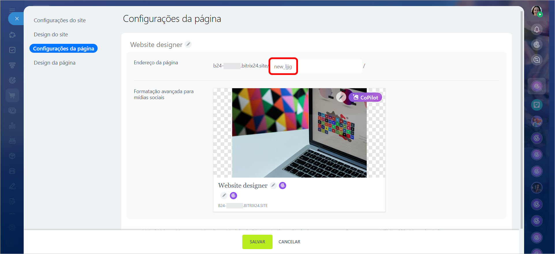 Assim, o endereço final será — b24-pzc1av.bitrix24.site.