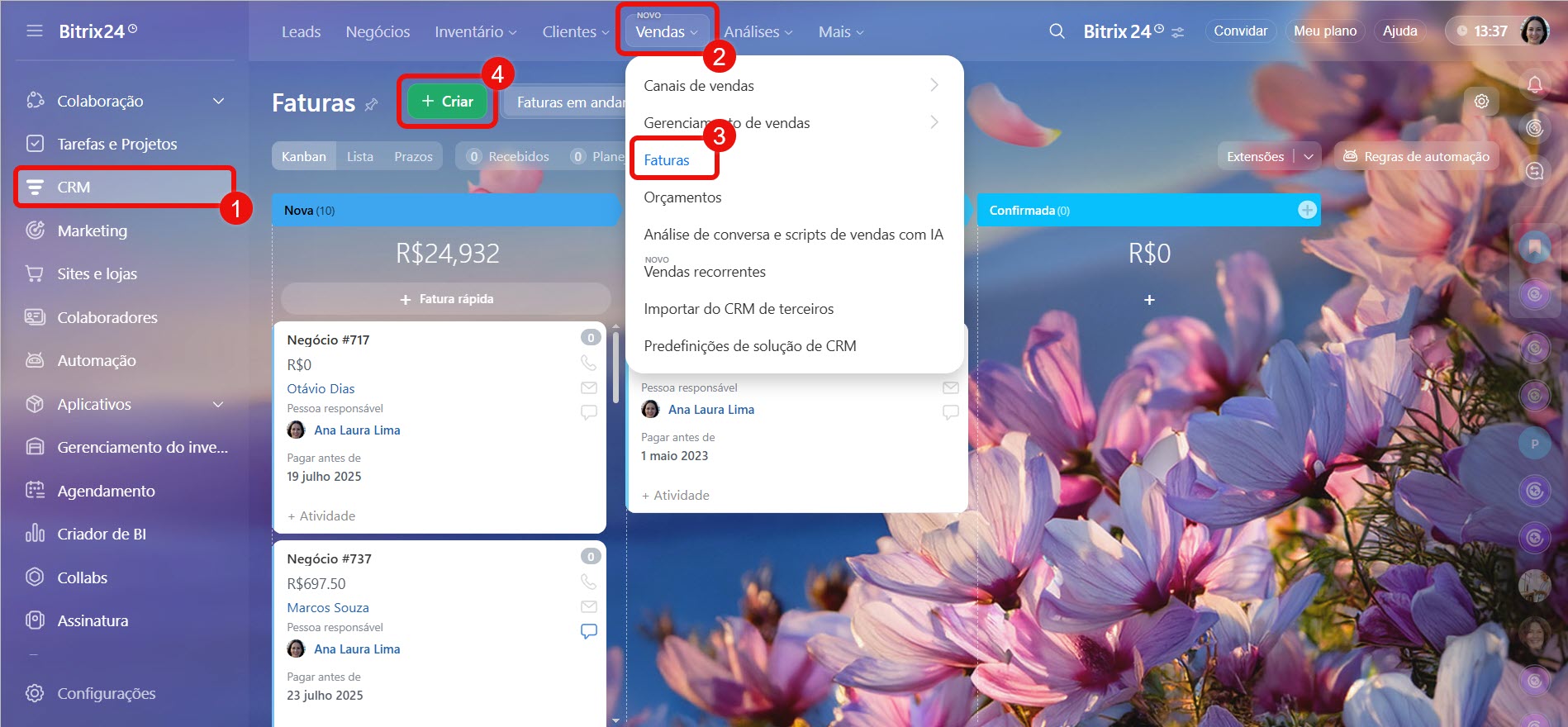 A configuração de criação regular de faturas pode ser feita por um administrador do Bitrix24 ou por um colaborador com permissão para editar e adicionar faturas.