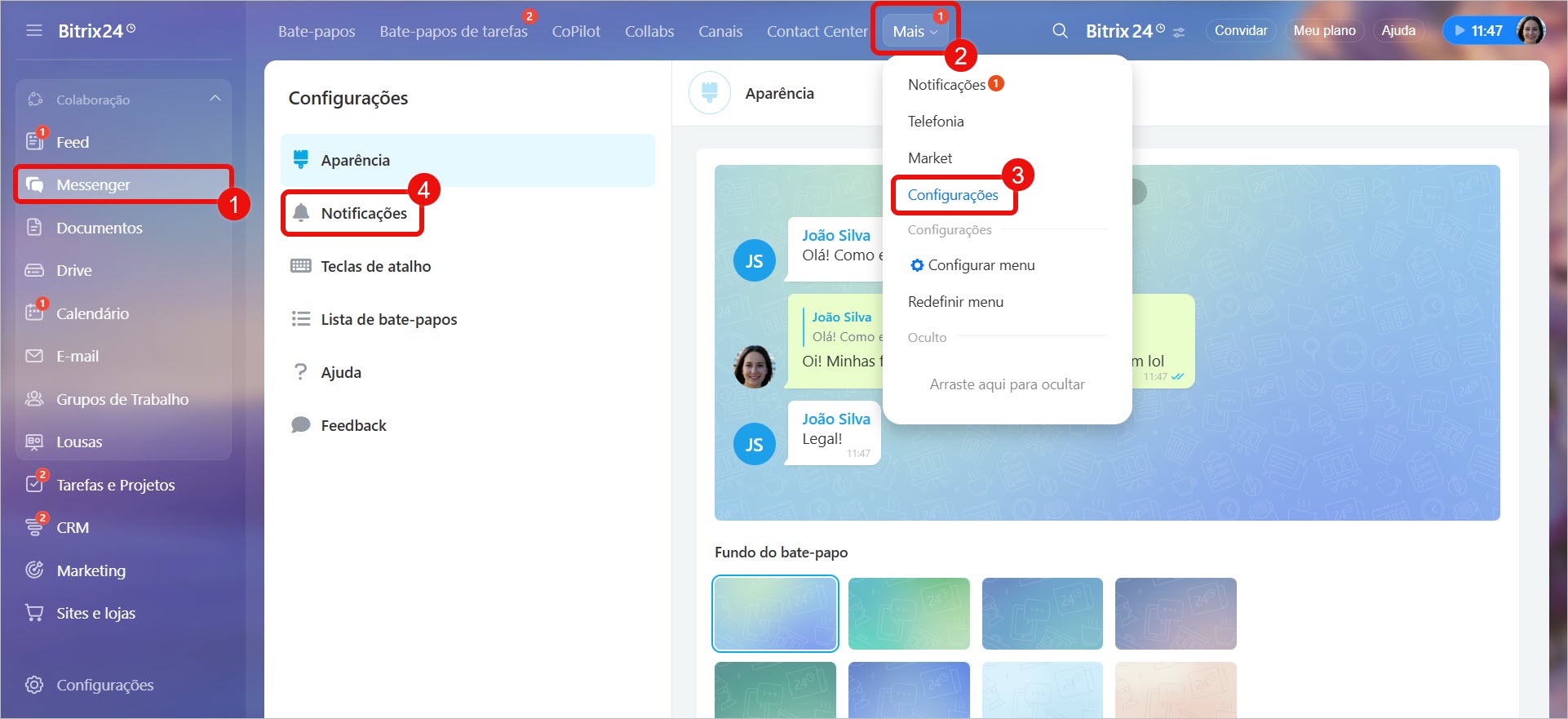 - Para receber apenas as notificações necessárias, personalize-as. Acesse Messenger > Mais > Configurações > Notificações.