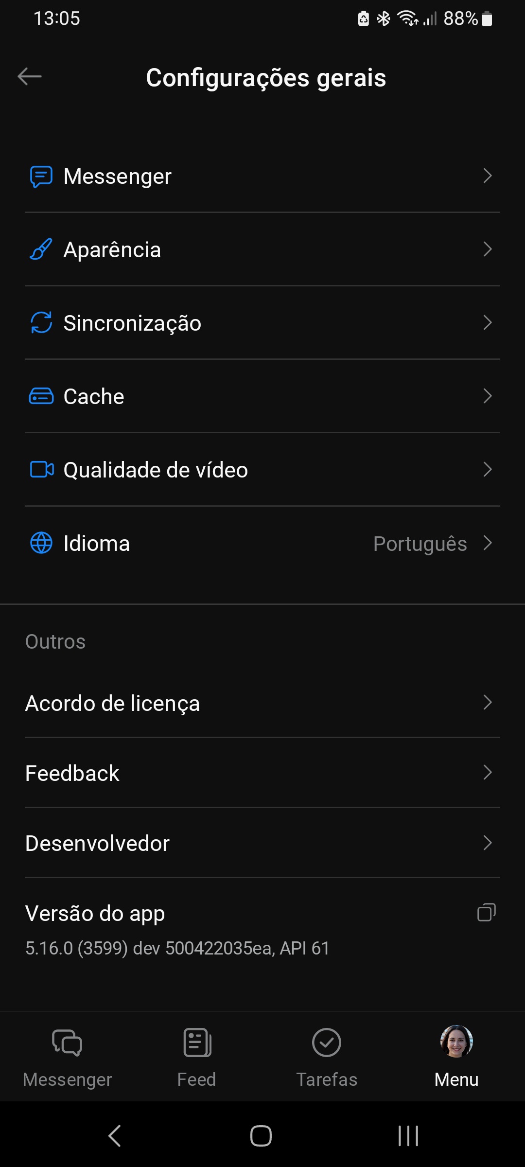 Ajustes gerais. Altere o tema do aplicativo, configure os chats, sincronize contatos e calendários, e selecione o idioma.