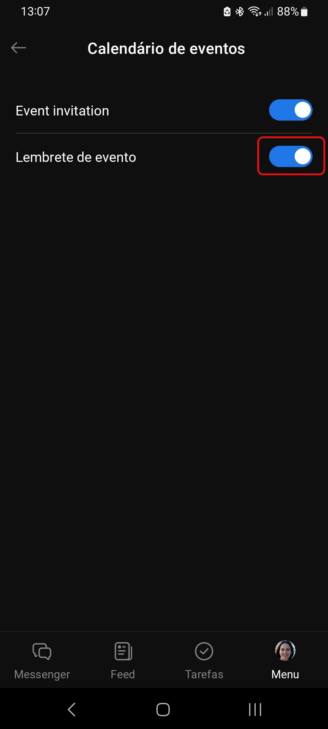 Você também pode personalizar notificações para ferramentas específicas, como lembretes de eventos no calendário.