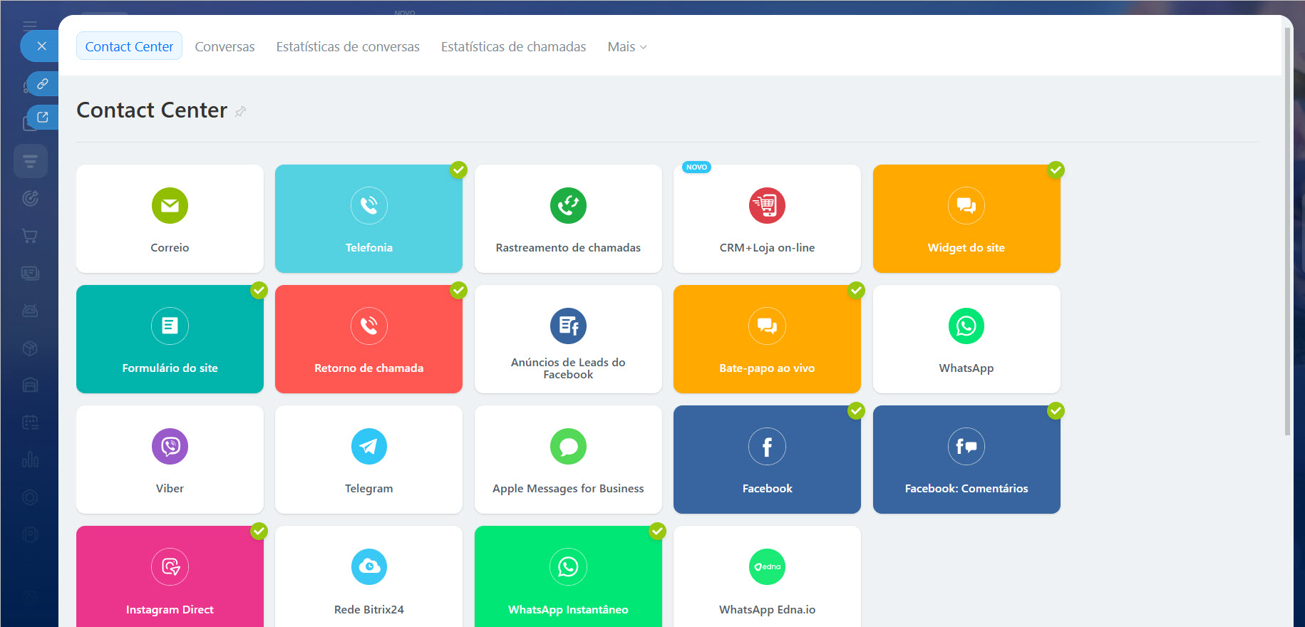 Você pode configurar os Canais Abertos na seção Contact Center do Bitrix24.