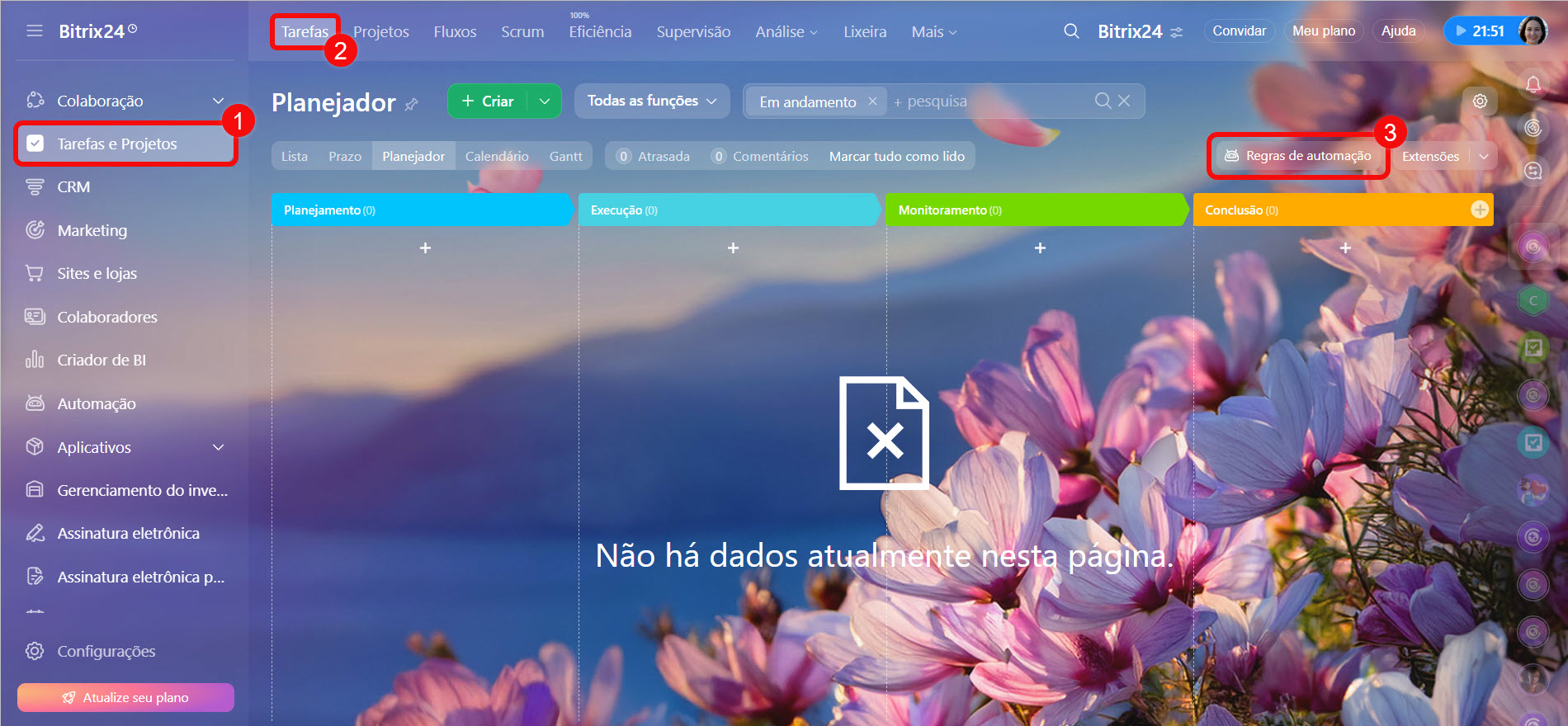 1-3. Acesse a seção Tarefas e projetos > Tarefas > Regras de automação.