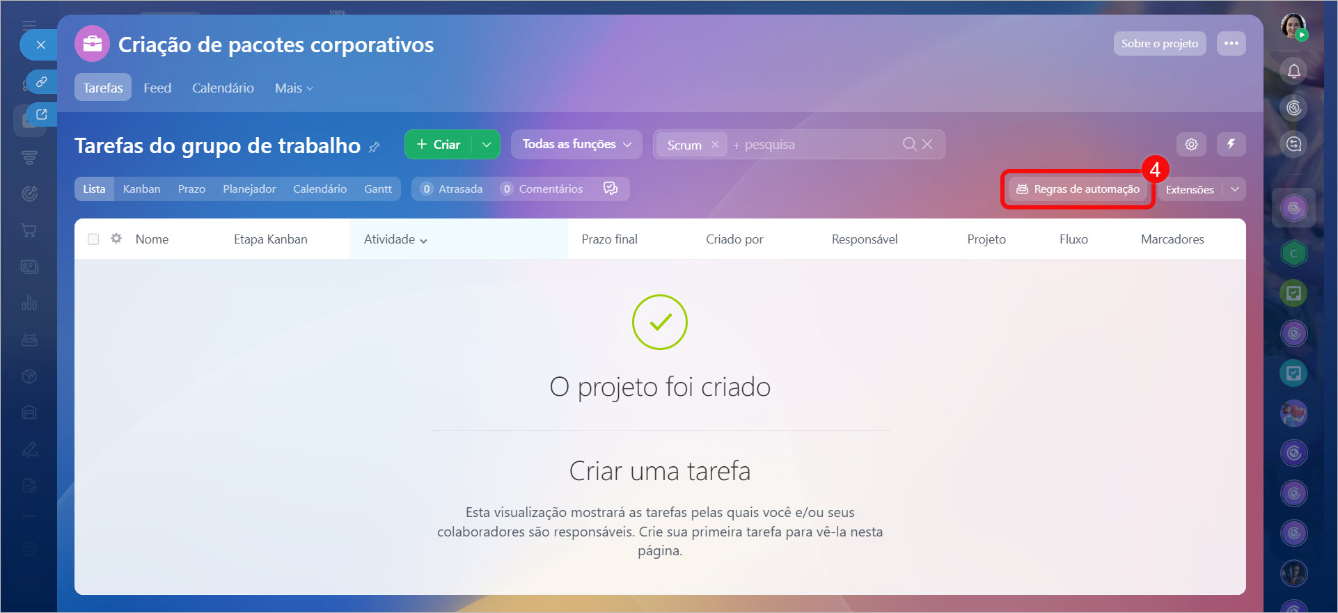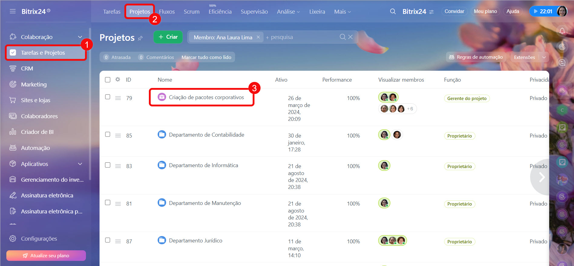 1-3. Acesse a seção Tarefas e projetos > Projetos e abra o projeto desejado.