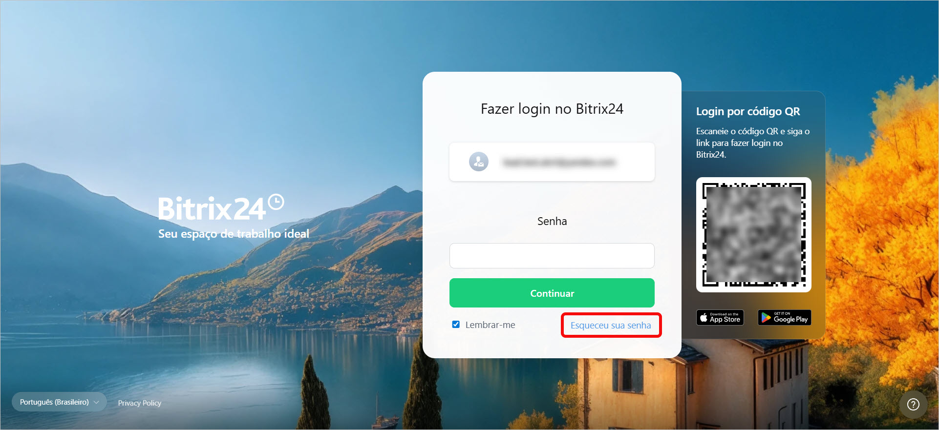 - Acesse a página de login do Bitrix24 e clique em Esqueceu sua senha?.