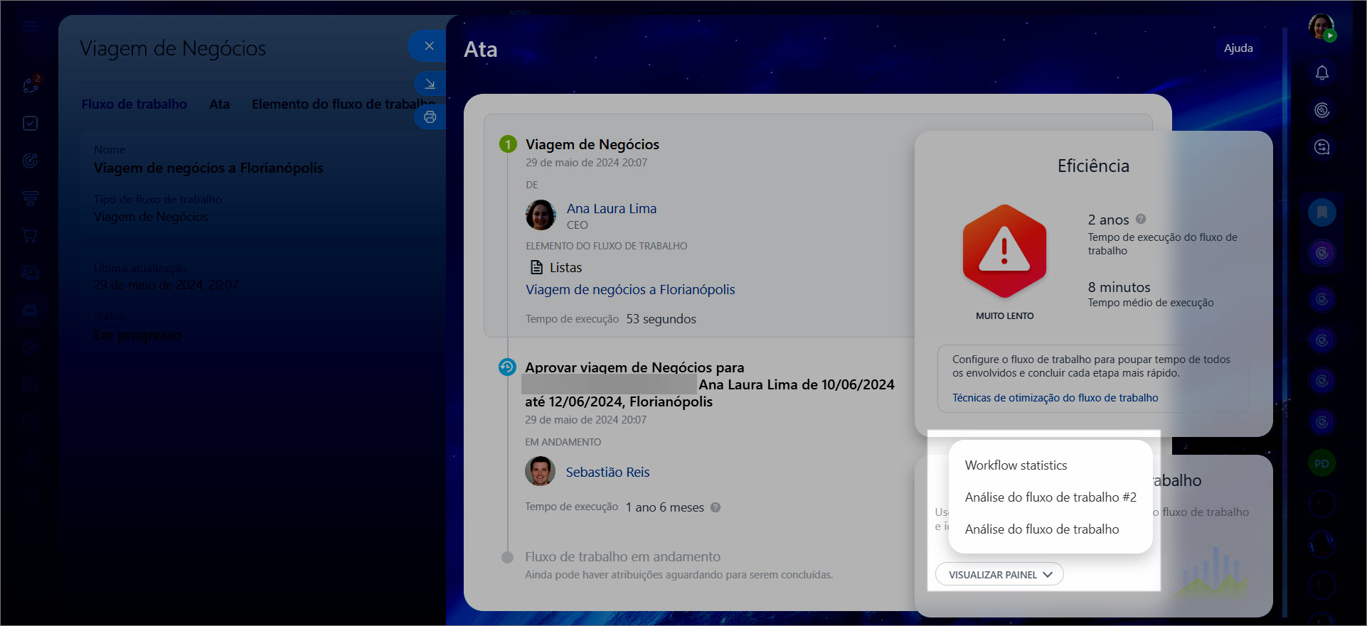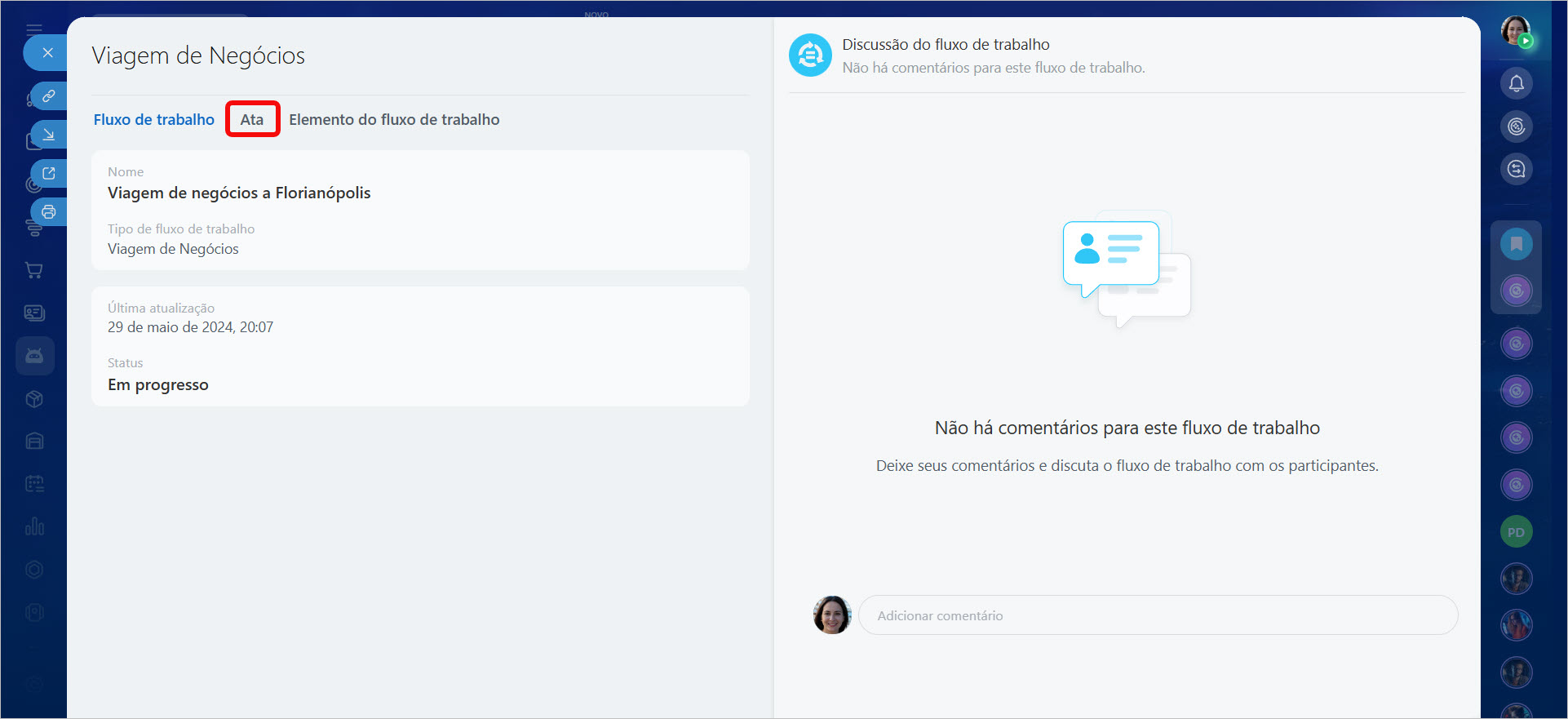 Modelos de fluxos de trabalho. Acesse Automação > Fluxos de trabalho > Fluxos de trabalho. Selecione o fluxo de trabalho desejado e abra o relatório na aba Ata.