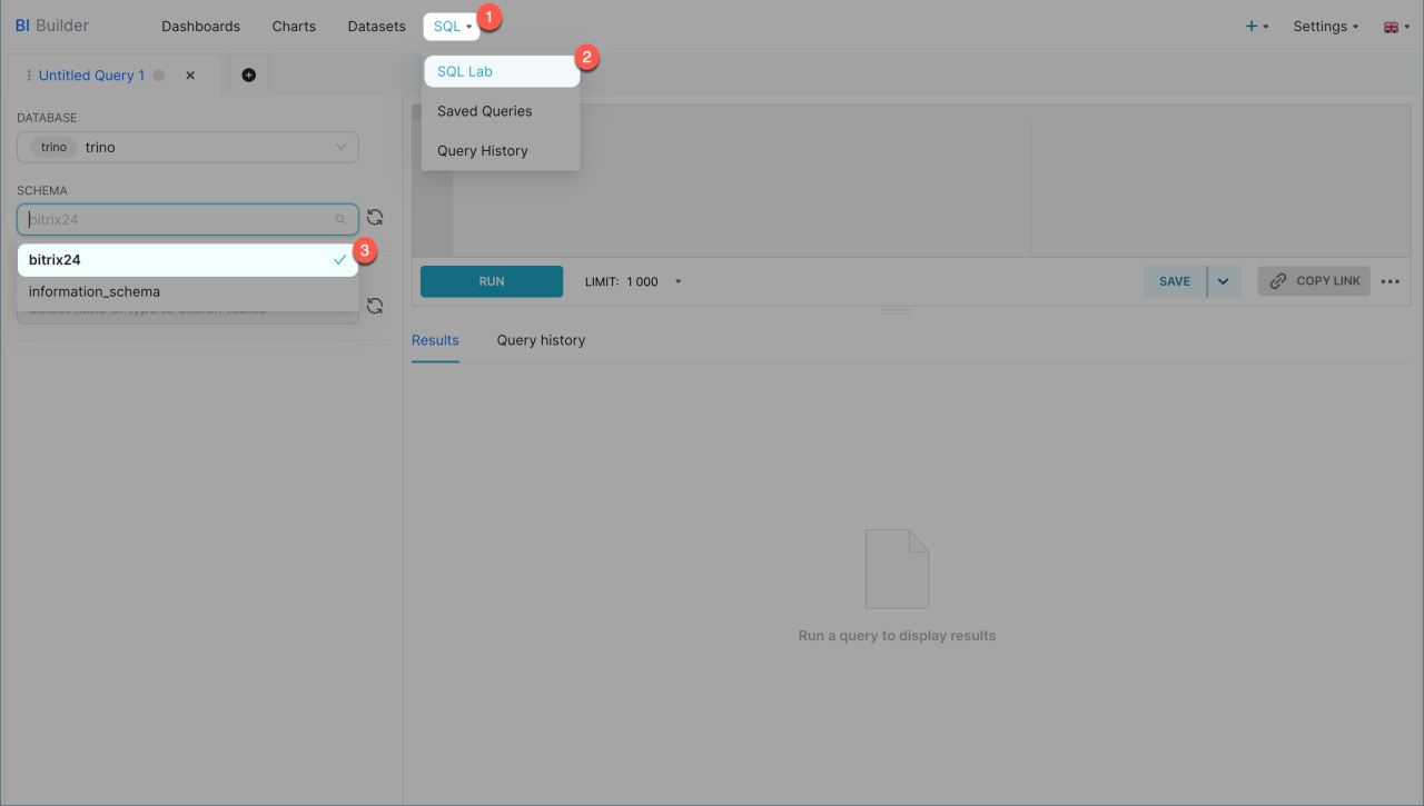 1–2. No Criador de BI, abra a aba SQL > SQL Lab.