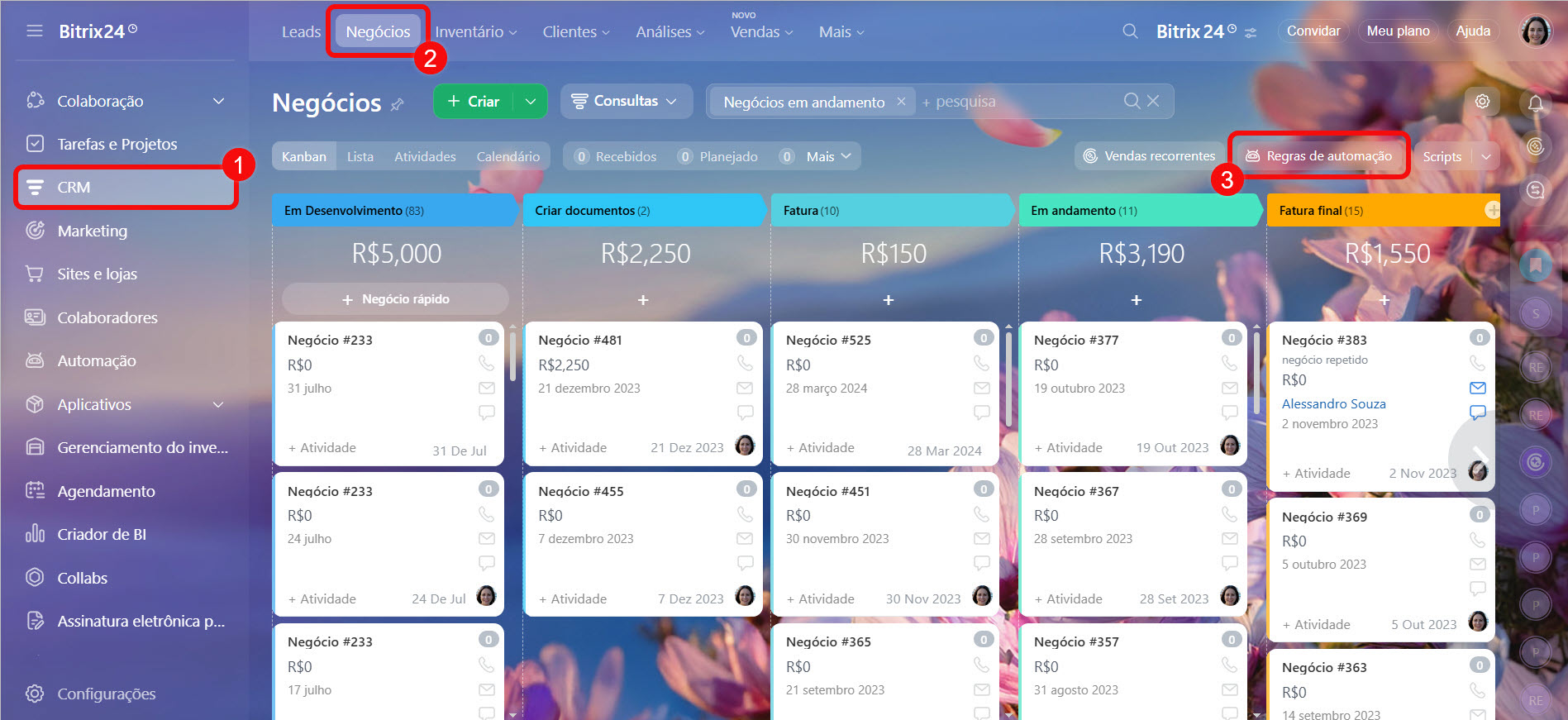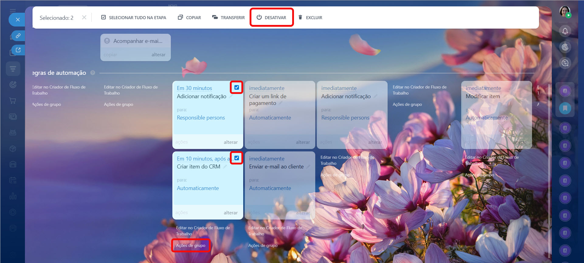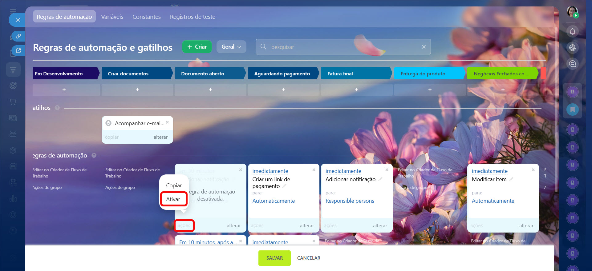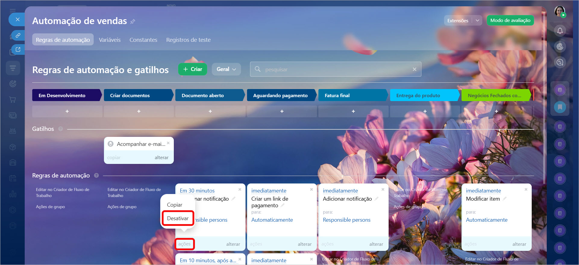 A regra de automação será desativada. Caso precise ativá-la novamente, selecione a opção correspondente no menu Ações.