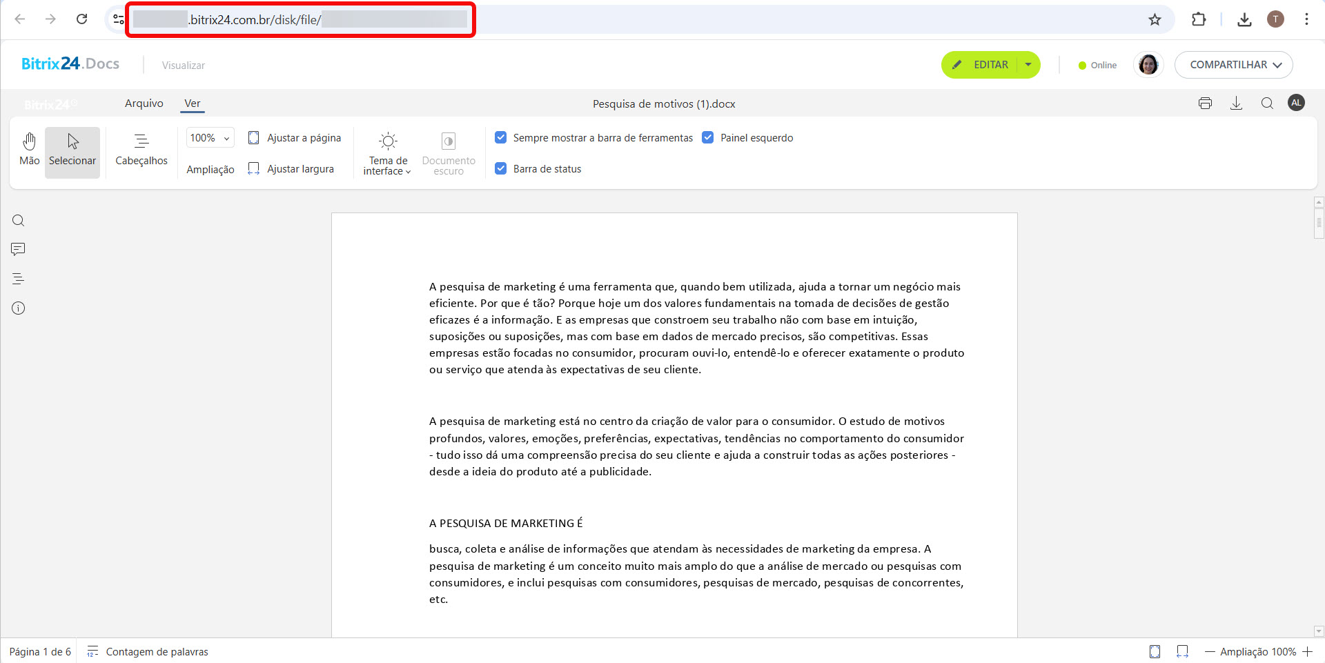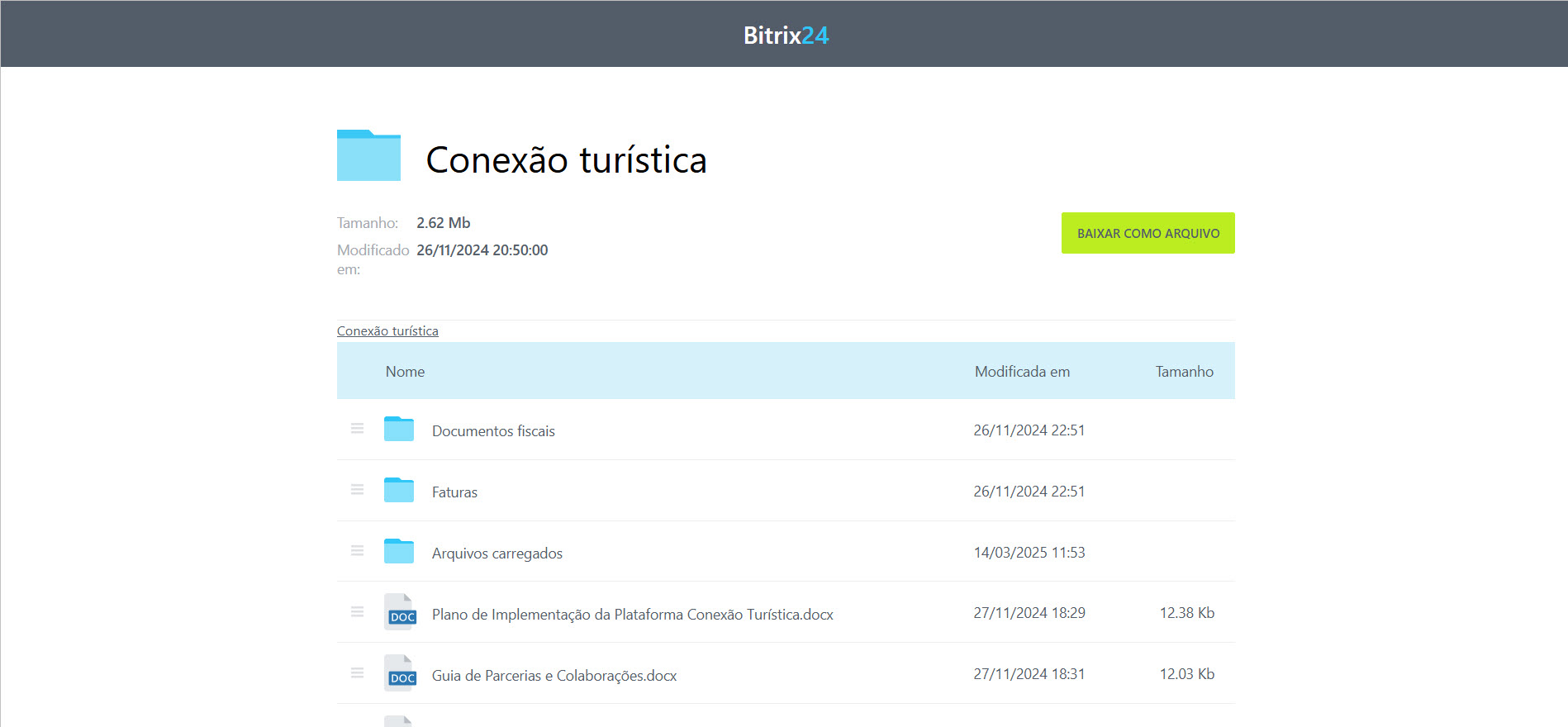 - No Bitrix24, é possível compartilhar documentos usando links internos e públicos.